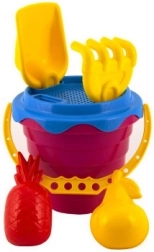 Komplektis on praktiline 12 cm suurune ämber, mida täiendab sõel suuremate liivaosakeste eraldamiseks. Kaasas on ka kühvel, rehad ja kaks vormi, mis võimaldavad lapsel luua originaalseid liivalosse ja -kujundeid.