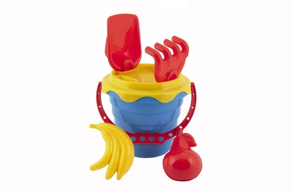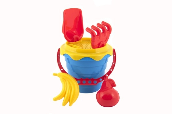 Komplektist leiad kõik, mida on vaja liivaga mängimiseks: ämber, sõel, kühvel, rehad ja kaks vormi.