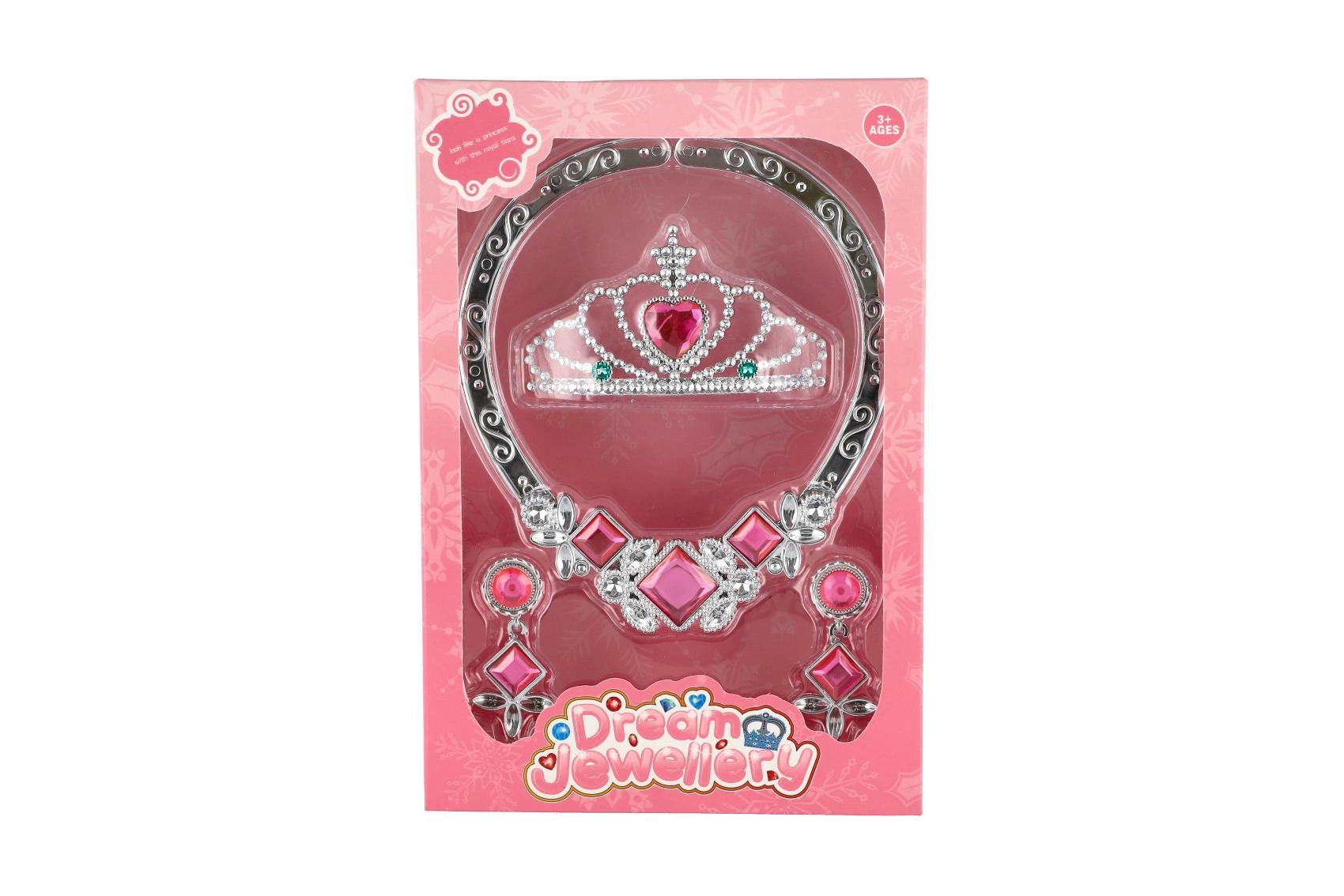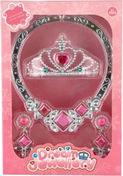 Muuda end hetkega printsessiks selle lummava ilukomplektiga, mis sisaldab kõike, mida väike iludus vajab kuninglikuks välimuseks – särav kroon, sobiv kaelakee ja elegantsed kõrvarõngad.