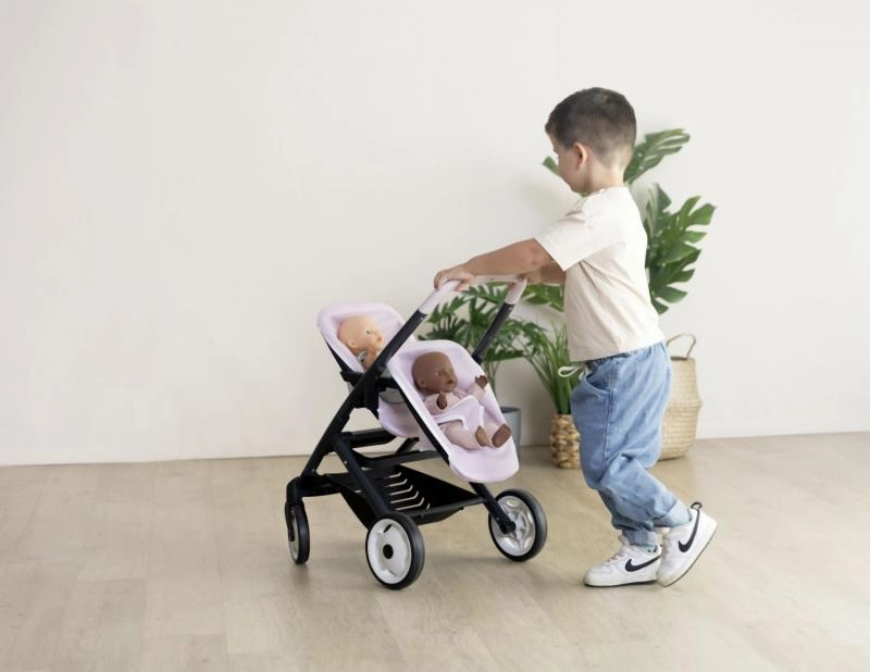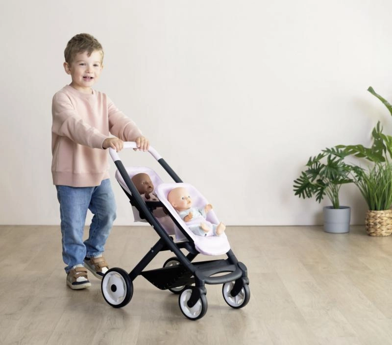 Smoby kaksikutele mõeldud nuku sportkärus kaunis Quinny disainis. See moodne kärus on varustatud eemaldatavate istekohtade ja vaiksete ratastega, mis tagavad mugava kasutamise.