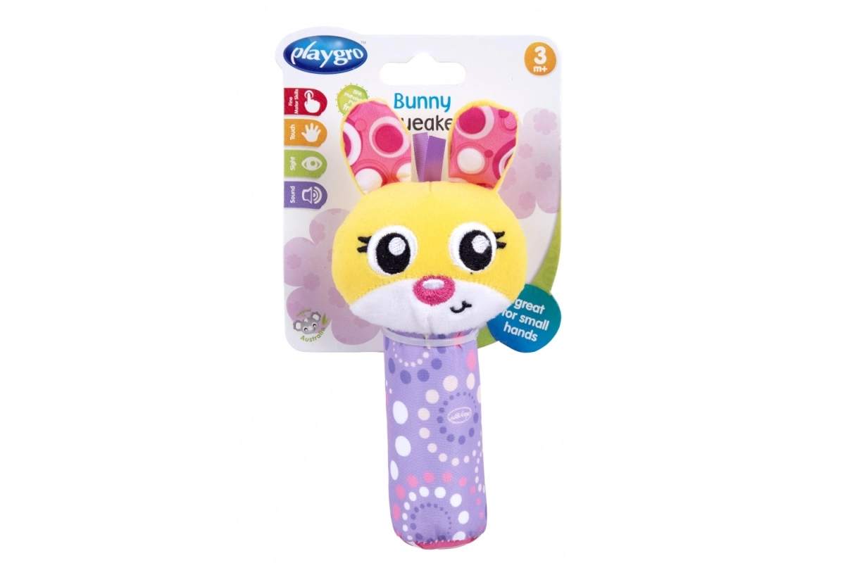 Playgro jänku piiksulelu on ideaalne kaaslane lastele alates 3. elukuust. Tänu ergonoomilisele disainile ja stimuleerivatele materjalidele aitab see arendada teie lapse meeli.