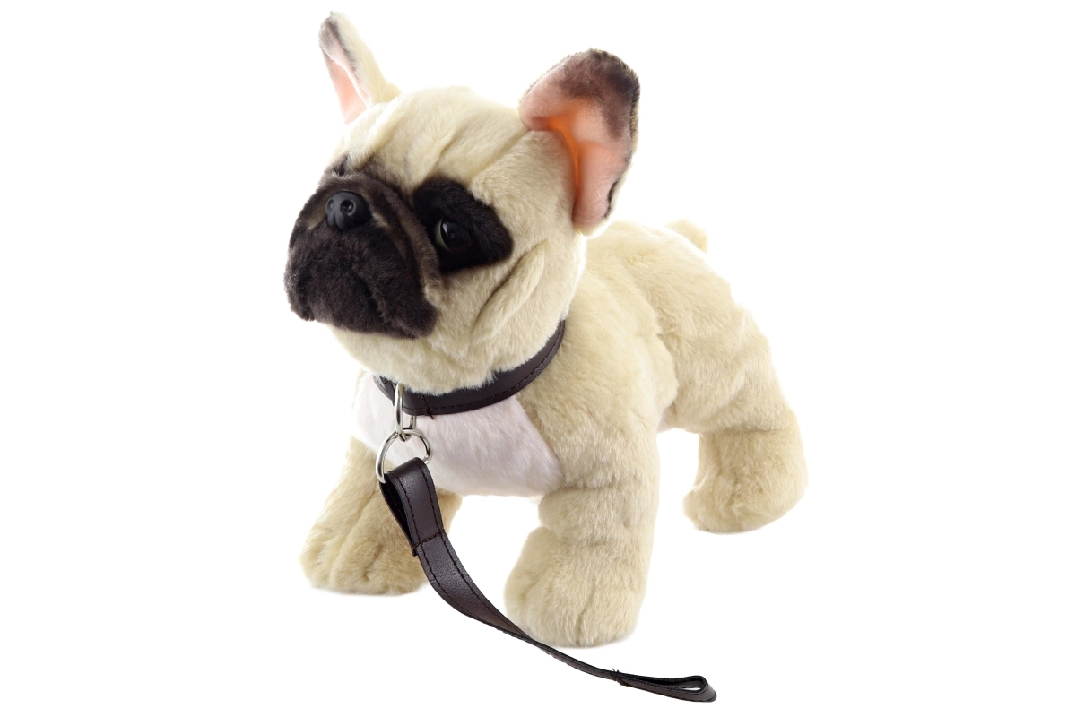 Keskkonnasõbralik plüüsist Prantsuse buldog realistliku välimusega on ideaalne kaaslane igas vanuses lastele. See armas kaisuloom tuleb praktilise jalutusrihmaga, mis soodustab mängu ja suhtlemist.