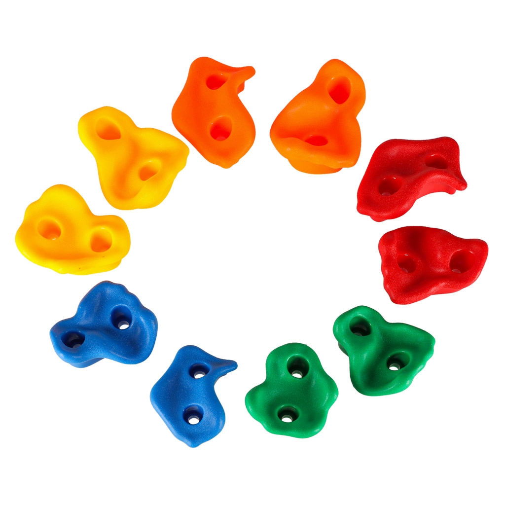 Komplekt sisaldab 10 ronimiskivi, mis on loodud silmas pidades laste turvalisust ja lõbu. Ronimine arendab motoorseid oskusi ja tugevdab lihaseid.