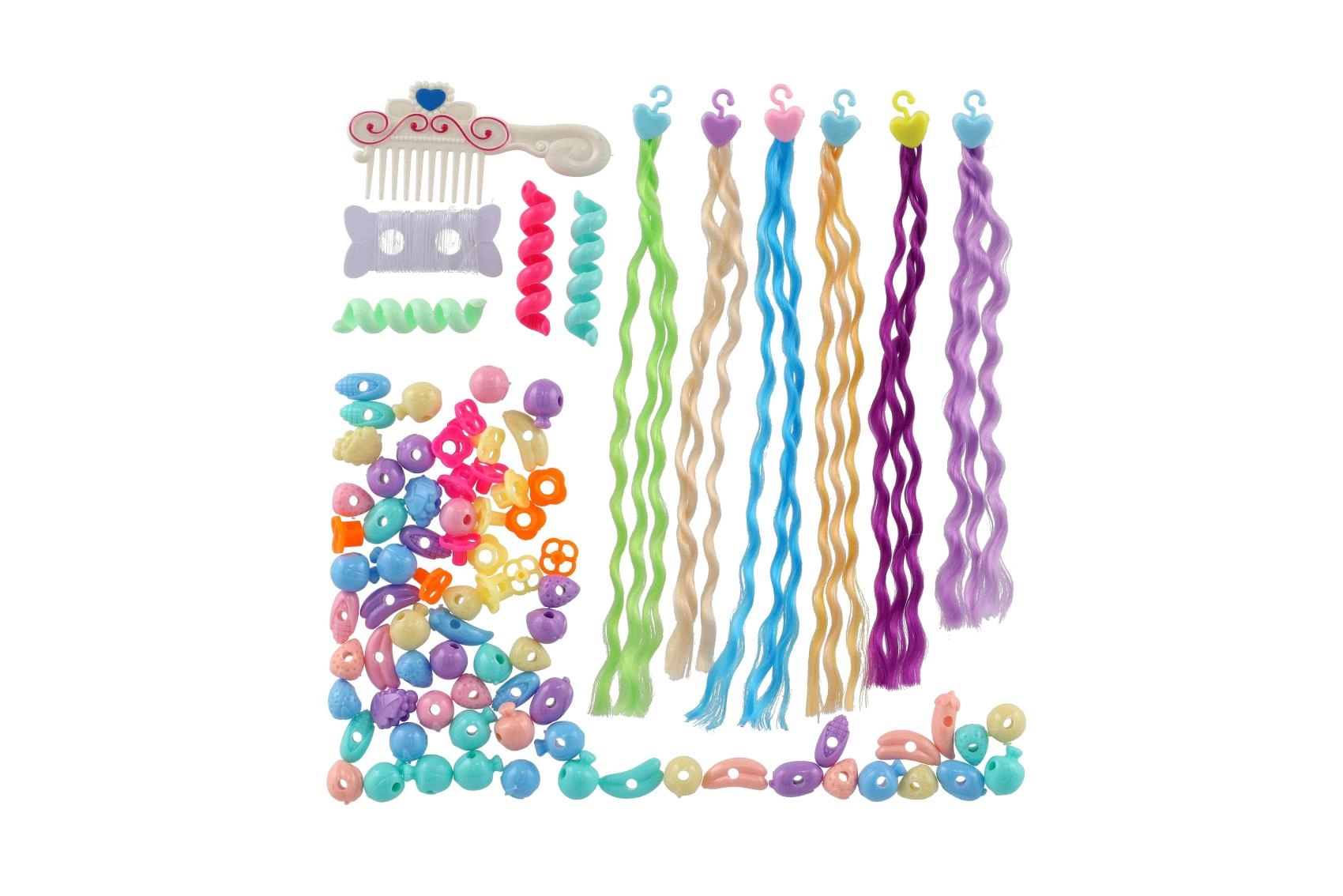 Loo endale originaalne soeng selle värvilise helmeste ja patside komplektiga, ideaalne väikestele iludustele, kes ihkavad kauneid juukseid.