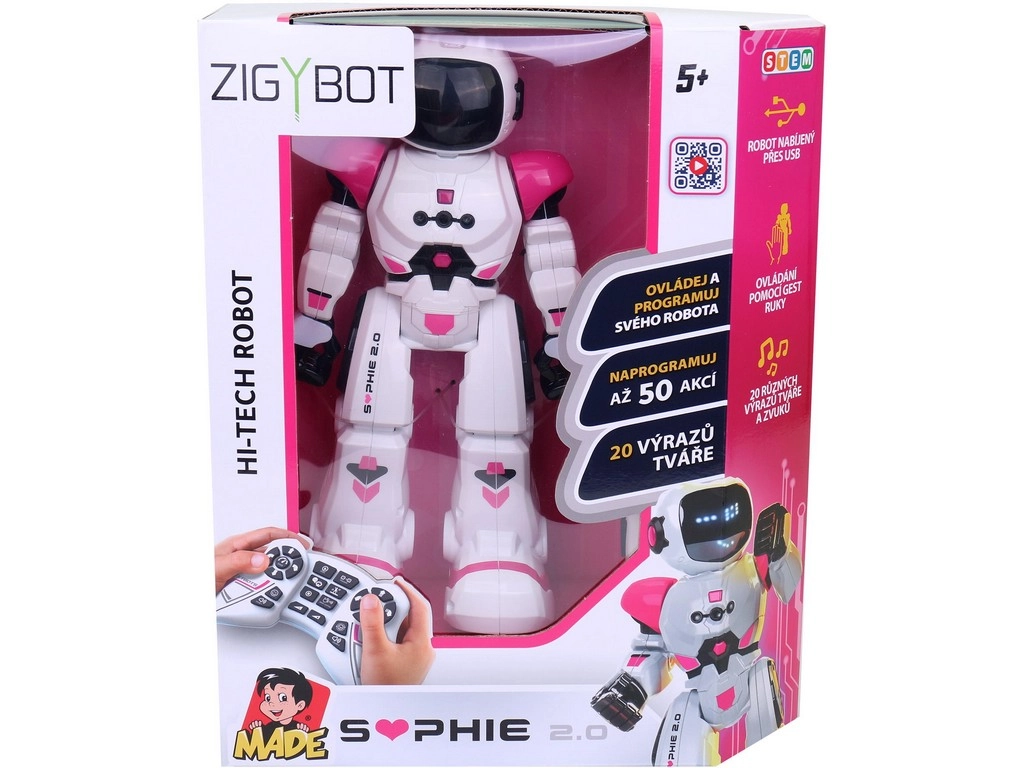 Juhtimine on võimalik mitte ainult puldiga, vaid ka käeliigutustega, mis suurendab lõbu. Ühendades USB-kaabli, saab Sophie hõlpsalt täis laadida ja ta on alati kasutusvalmis.