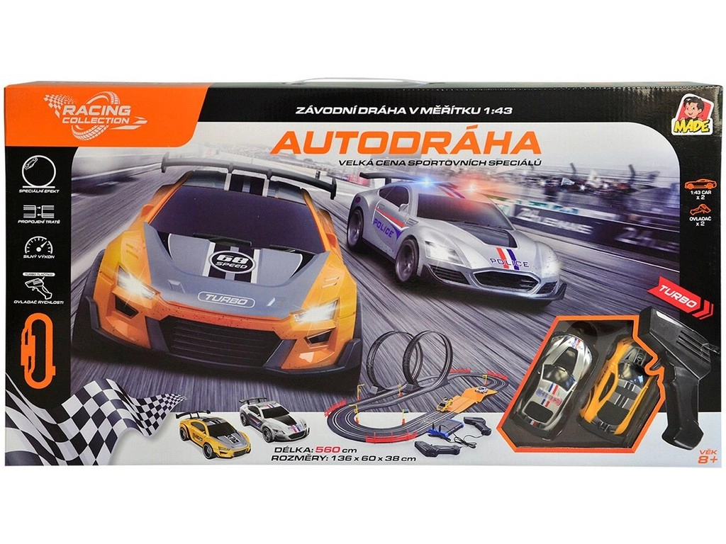 Valmistu kaasahaaravateks võidusõitudeks autoteega Racing Collection sarjast. Komplekt sisaldab kahte võidusõiduautot ja kõike vajalikku põnevaks sõiduks, sealhulgas kahte pulti, loope ja hüpperampi. Tänu lihtsale käsitsemisele ja hõlpsale kokkupanekule on see ideaalne meelelahutus kogu perele.