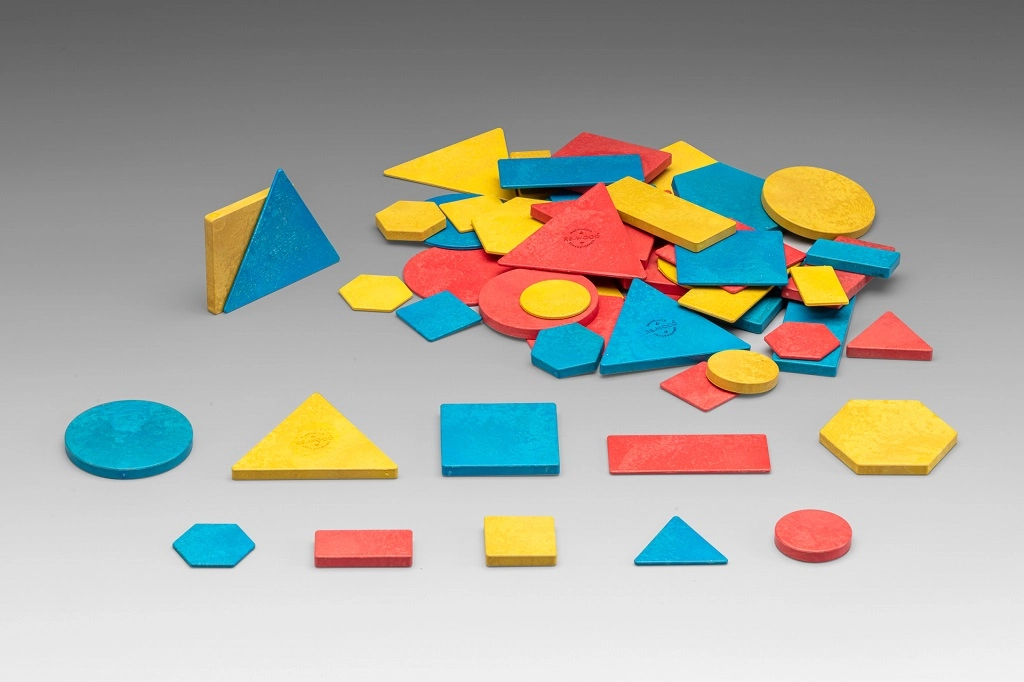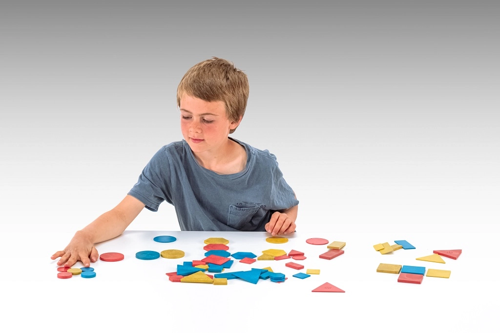 Komplektis on 60 puidust plokki, mis on ühtaegu mänguasjad ja õppevahendid. Lapsed õpivad ära tundma ja nimetama erinevaid kujusid, värve ja suurusi. Valmistatud jätkusuutlikust ja taaskasutatud materjalist, see komplekt on keskkonnasõbralik ja omab PEFC-sertifikaati.