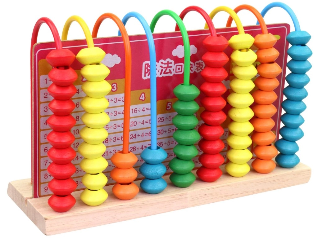 - Üheksa vart, millest igal on kümme puidust helmest, võimaldab hõlpsat liitmist ja lahutamist.