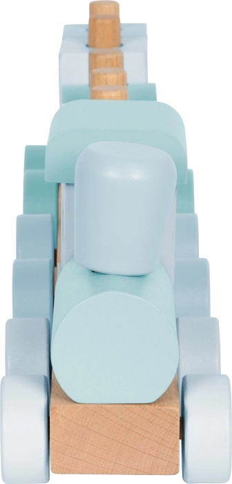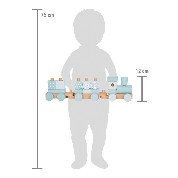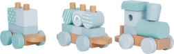Small Footi puidust rong on ideaalne väikestele ehitajatele suure kujutlusvõimega. Rong koosneb vedurist ja kahest vagunist, millele saab paigutada kokku 14 värvilt sobitatud ehitusklotsi. Klotsid käivad lihtsalt puidust pulkadele, aidates lastel arendada peenmotoorikat ja liigutuste koordineerimist. Õrnade värvide ja looduslike puidutoonide kooslus teeb sellest mänguasjast nii lõbusa kui ka esteetiliselt köitva valiku.
