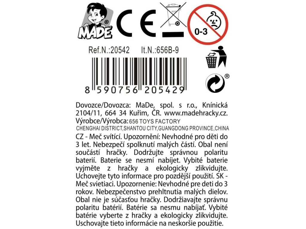 Avastage lõbu selle imelise lastemõõgaga, mis sobib ideaalselt väikestele rüütlitele või superkangelastele. See on valmistatud kvaliteetsest plastist ja on kergesti haaratav alates 3. eluaastast. Tänu valgus- ja heliefektidele pakub see realistlikke mänguvõimalusi. Mõõk töötab 3 AAA patareiga, mis tagab pikaajalise toimimise.