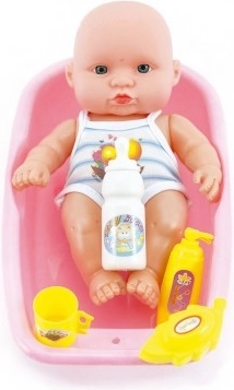 Koge rõõmu beebi eest hoolitsemisest selle armsa komplektiga! Tüdrukud saavad selle mänguasjaga õppida igapäevast beebihooldust; komplektis on beebinukk ja väike vann.