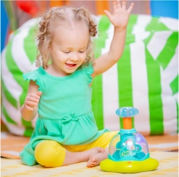 See ainulaadne värviline vurr-mänguasi on suurepärane valik lastele alates 6. elukuust. Mänguasi pakub kuni 20 erinevat meloodiat, mis lõbustavad iga last ja loovad rõõmsa õhkkonna. Tänu helitugevuse reguleerimisele saab heli hõlpsasti kohandada nii keskkonna kui ka lapse individuaalsete vajadustega.