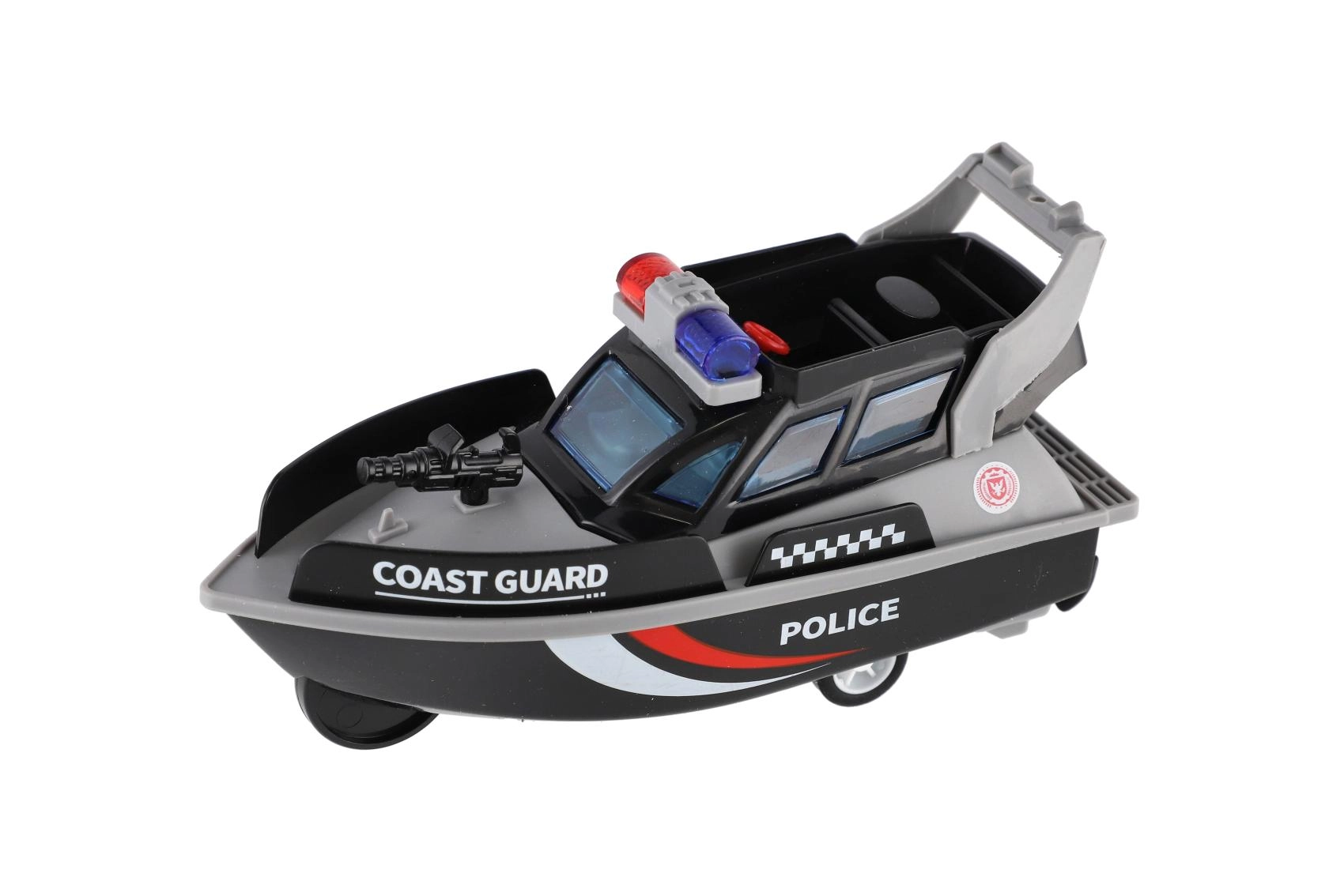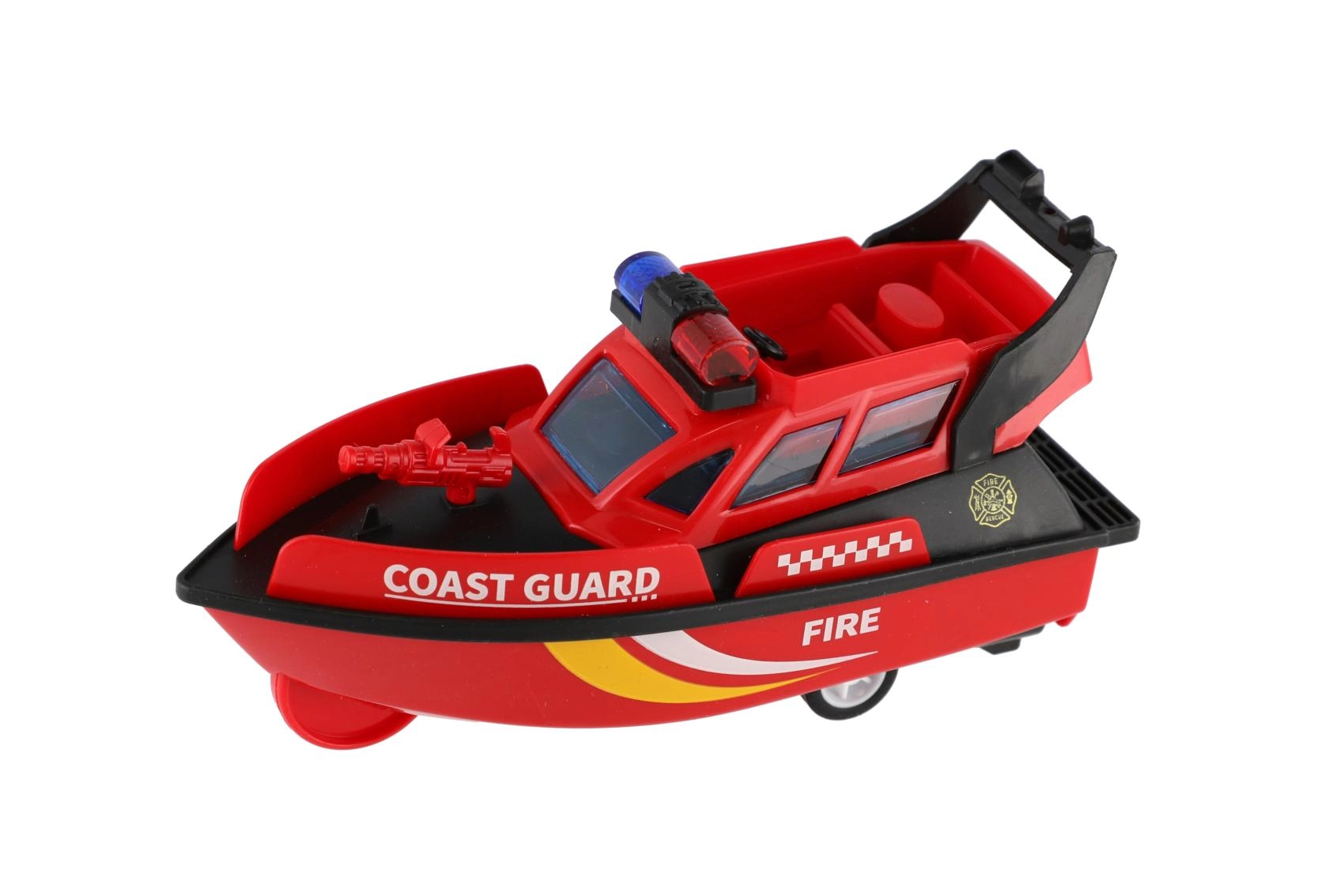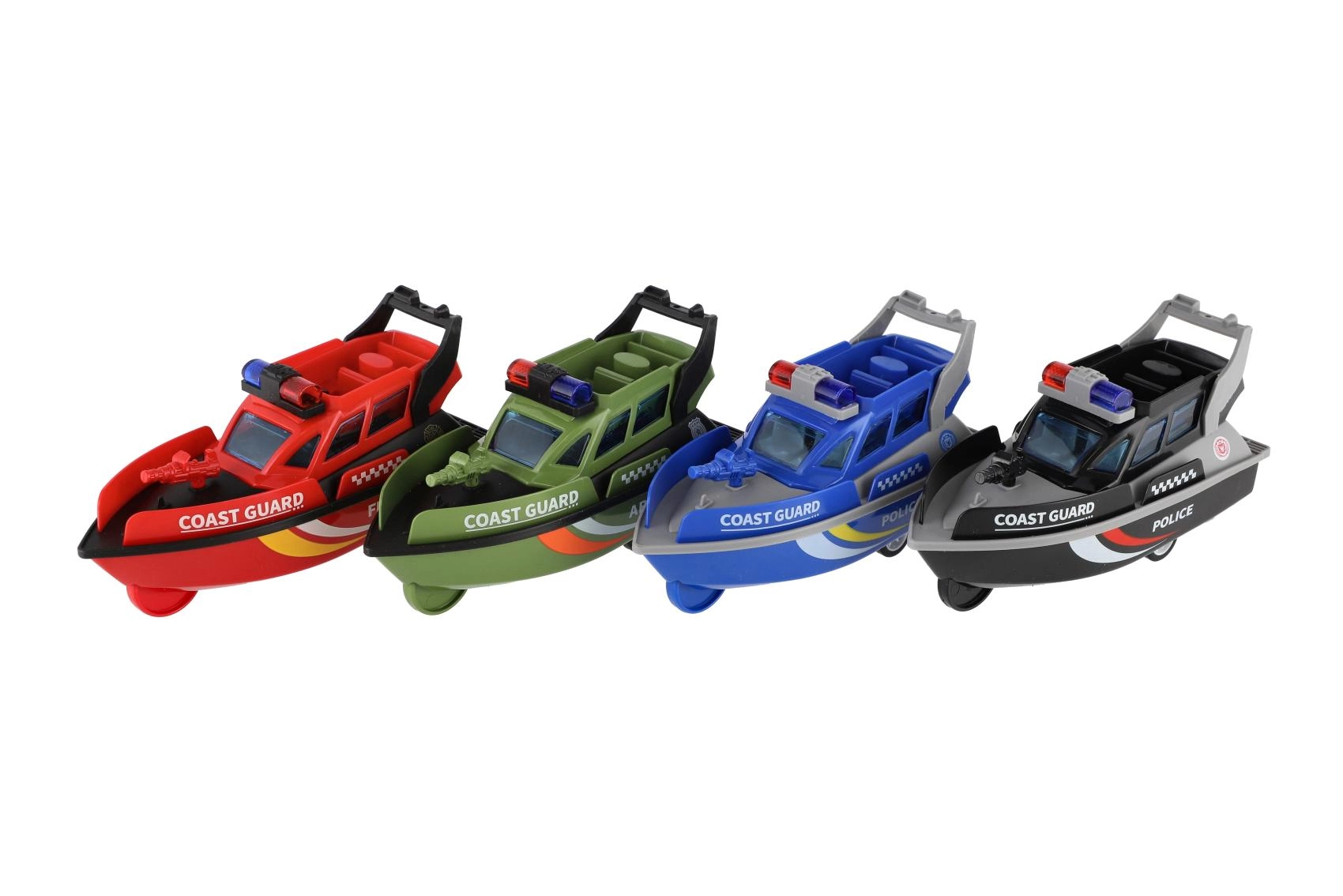 Seikle merel selle kvaliteetsest plastist päästepaadiga! 14 cm pikkune mudel on loodud nii, et pärast tõmbamist liigub see tänu hoorattamehhanismile edasi ilma patareideta.