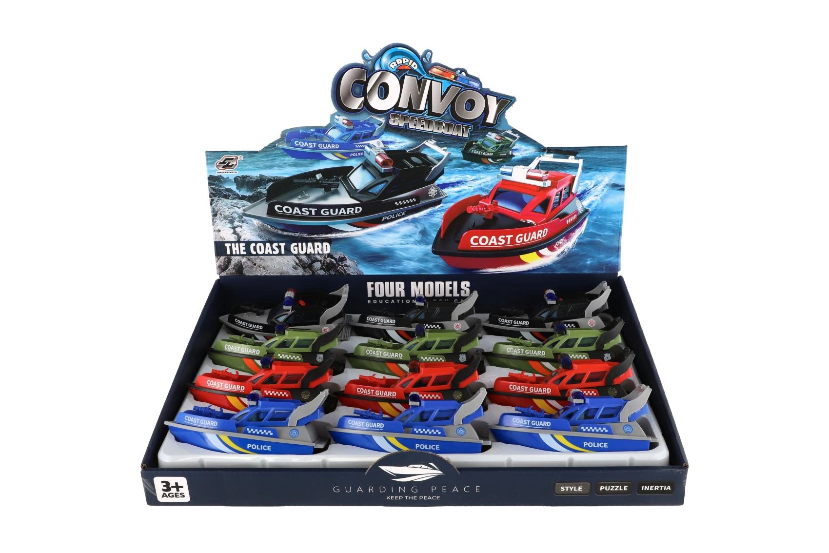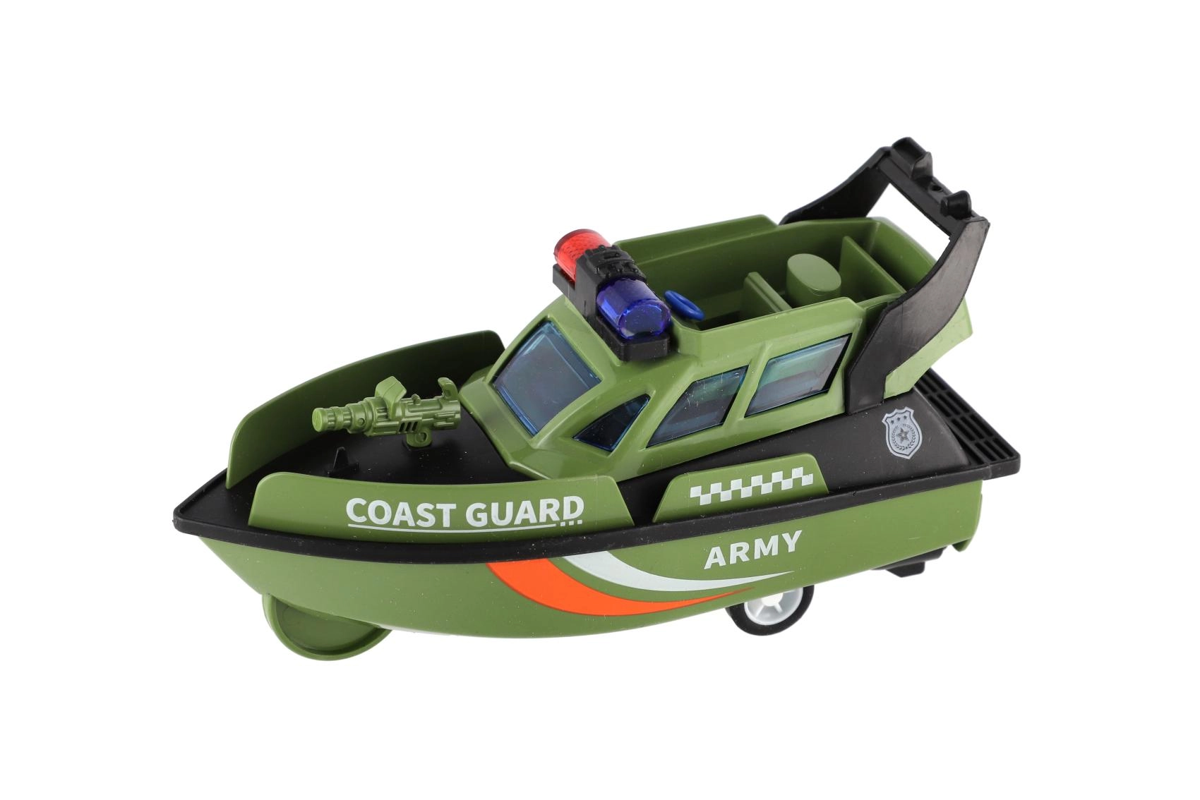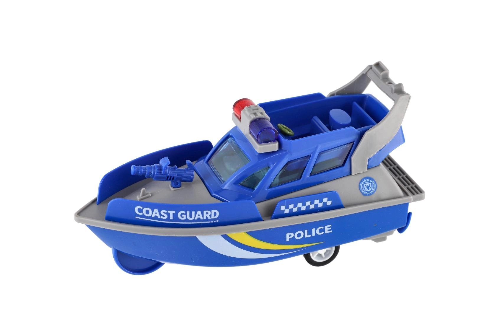 Seikle merel selle kvaliteetsest plastist päästepaadiga! 14 cm pikkune mudel on loodud nii, et pärast tõmbamist liigub see tänu hoorattamehhanismile edasi ilma patareideta.