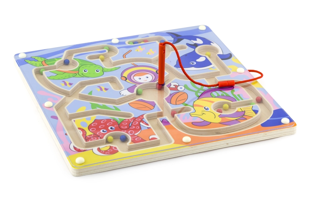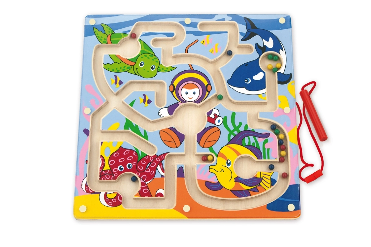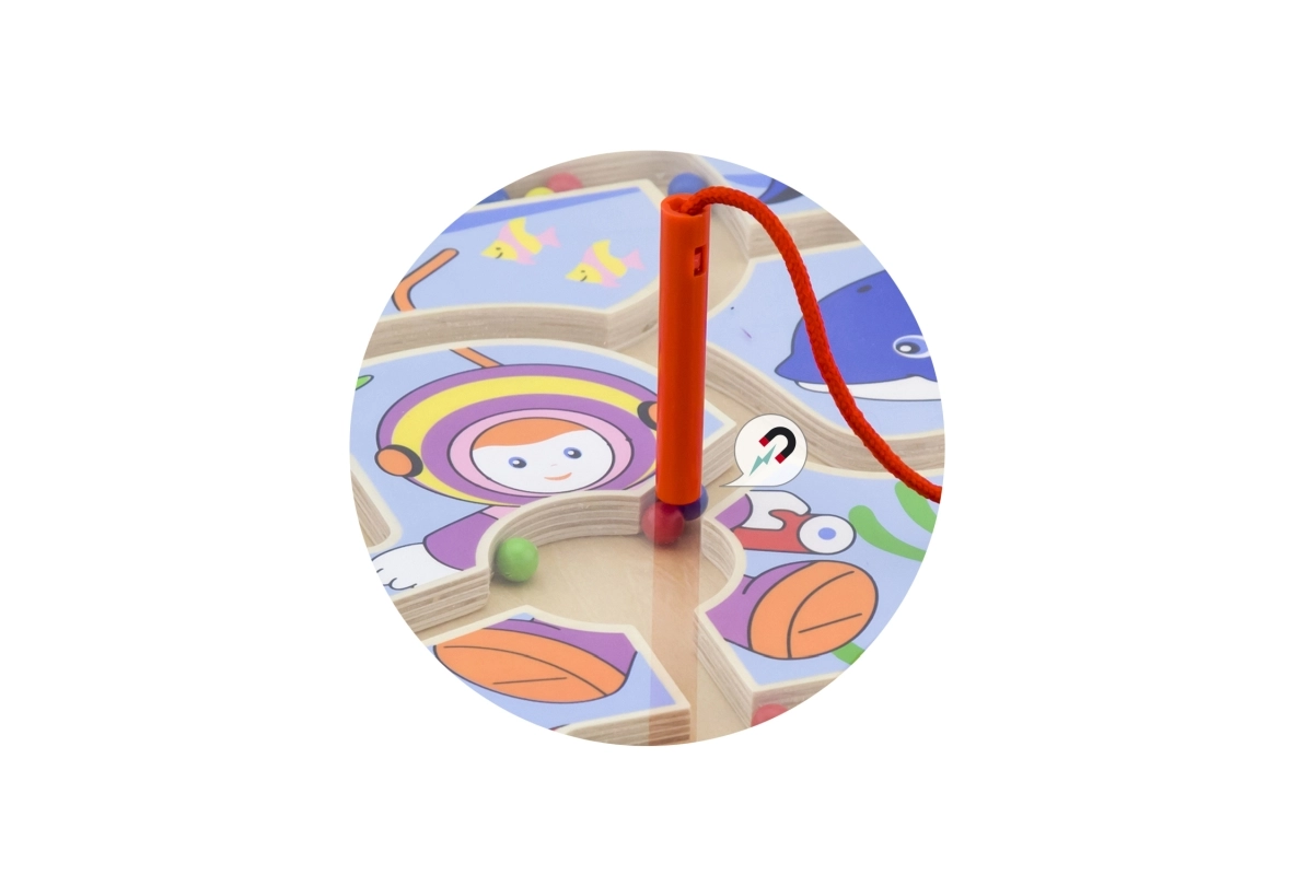 Paku lastele nutikat mängurõõmu puidust magnetlabürindiga, mis arendab oskusi loomulikul ja mängulisel viisil. Magnetpulgaga juhivad lapsed värvilisi kuule keerukatel radadel, harjutades haaret, keskendumist ja silma–käe koordinatsiooni. Tänu turvaliselt suletud konstruktsioonile ei lähe kuulid kaduma ning mäng sobib hästi ka reisile.