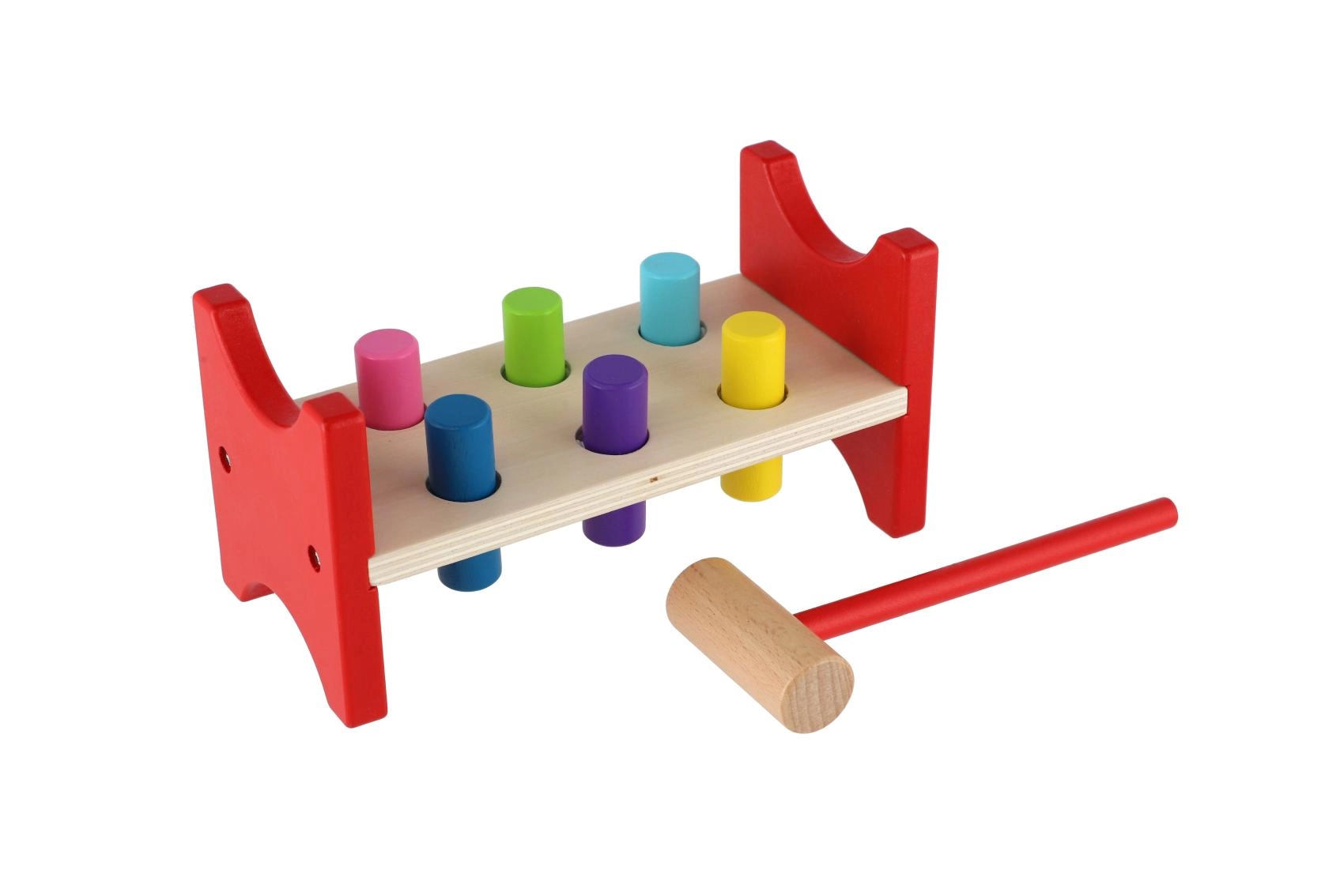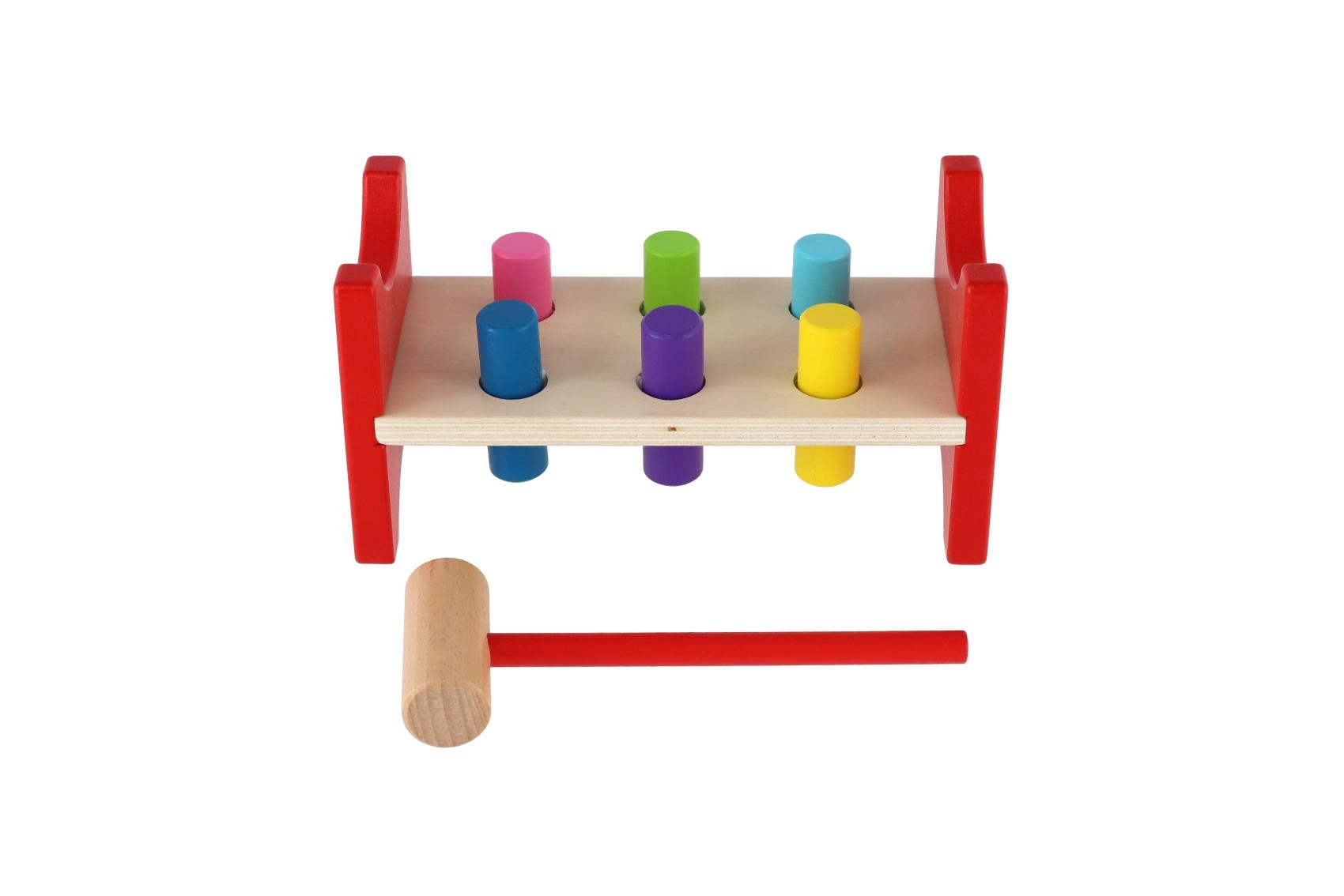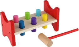 See ajatult populaarne puidust mänguasi toetab loomulikku õppimist läbi mängu. Lapsed löövad haamriga värvilised tapid avadesse, harjutades nii liigutuste täpsust, rütmitunnet kui ka kannatlikkust. Tugev puidust pink koos ohutult ümarate servadega tagab pika kasutusea ja turvalise mängu.