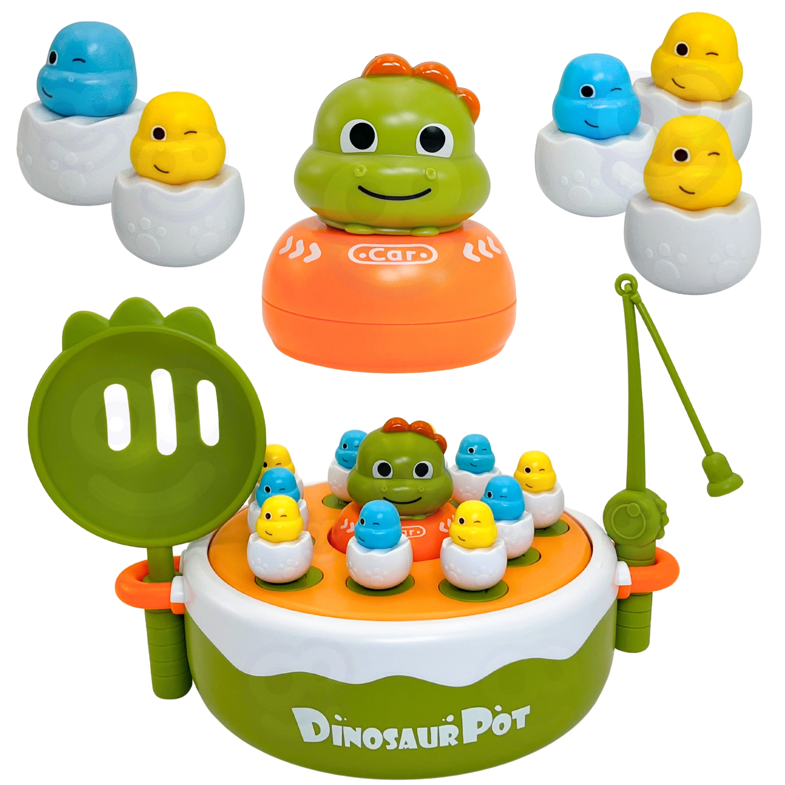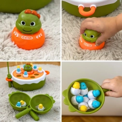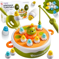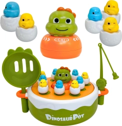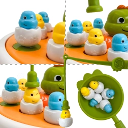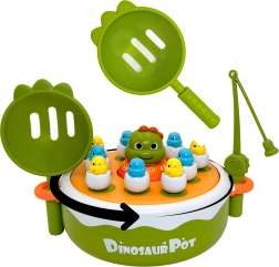 Sukeldu koos lastega ürgaega WOOPIE interaktiivse mänguga. See mitmekülgne 4-ühes komplekt ühendab endas magnetpüügi, lõbusa katapuldimängu, mini dino-autorongi ja aluse tagaküljel ka Trips-Traps-Trulli. Värvilised dino-tibude kujukesed „koorekeses“ ning osav tegutsemine õngede ja kühvlitega arendavad peenmotoorikat, koordinatsiooni ja koosmängu kahele.