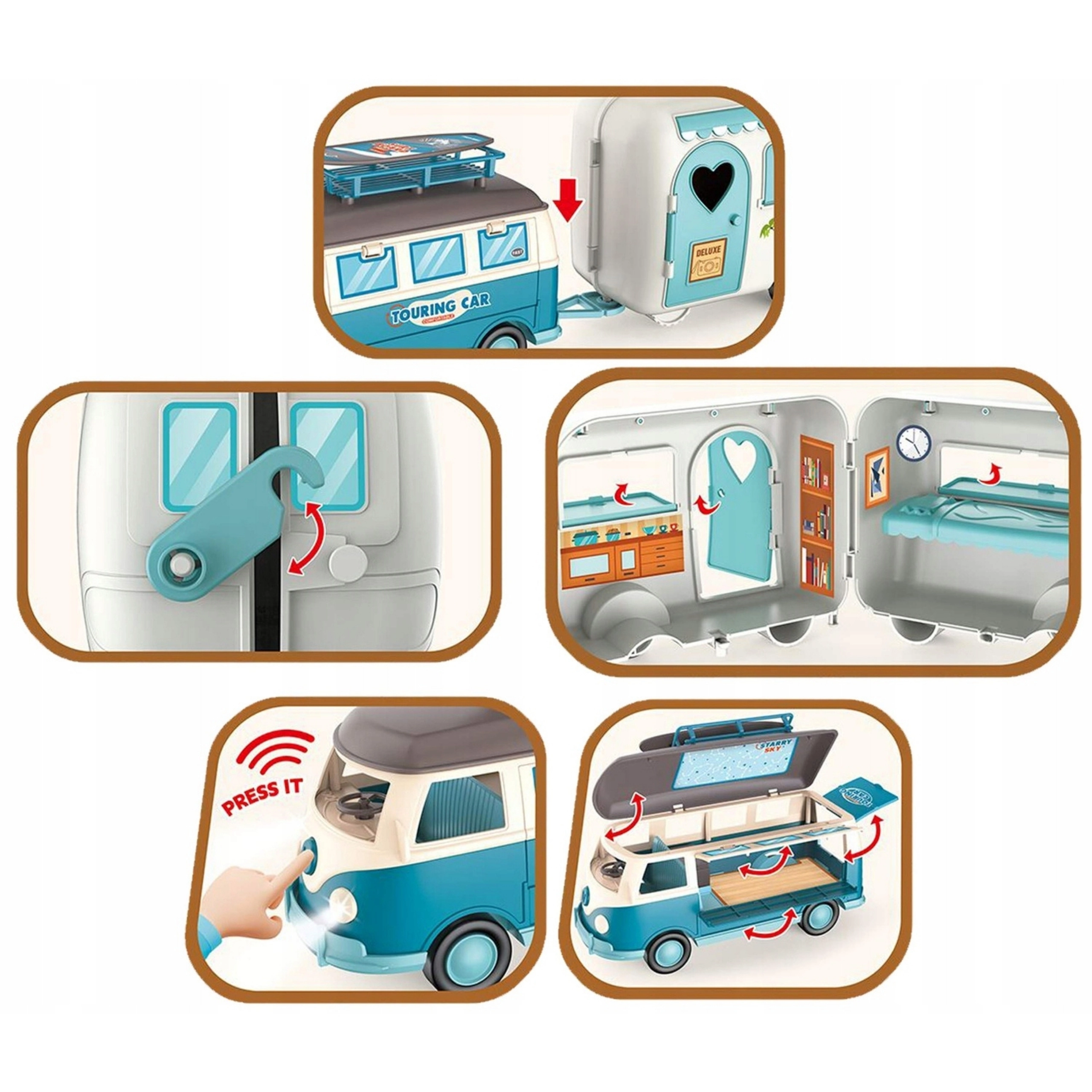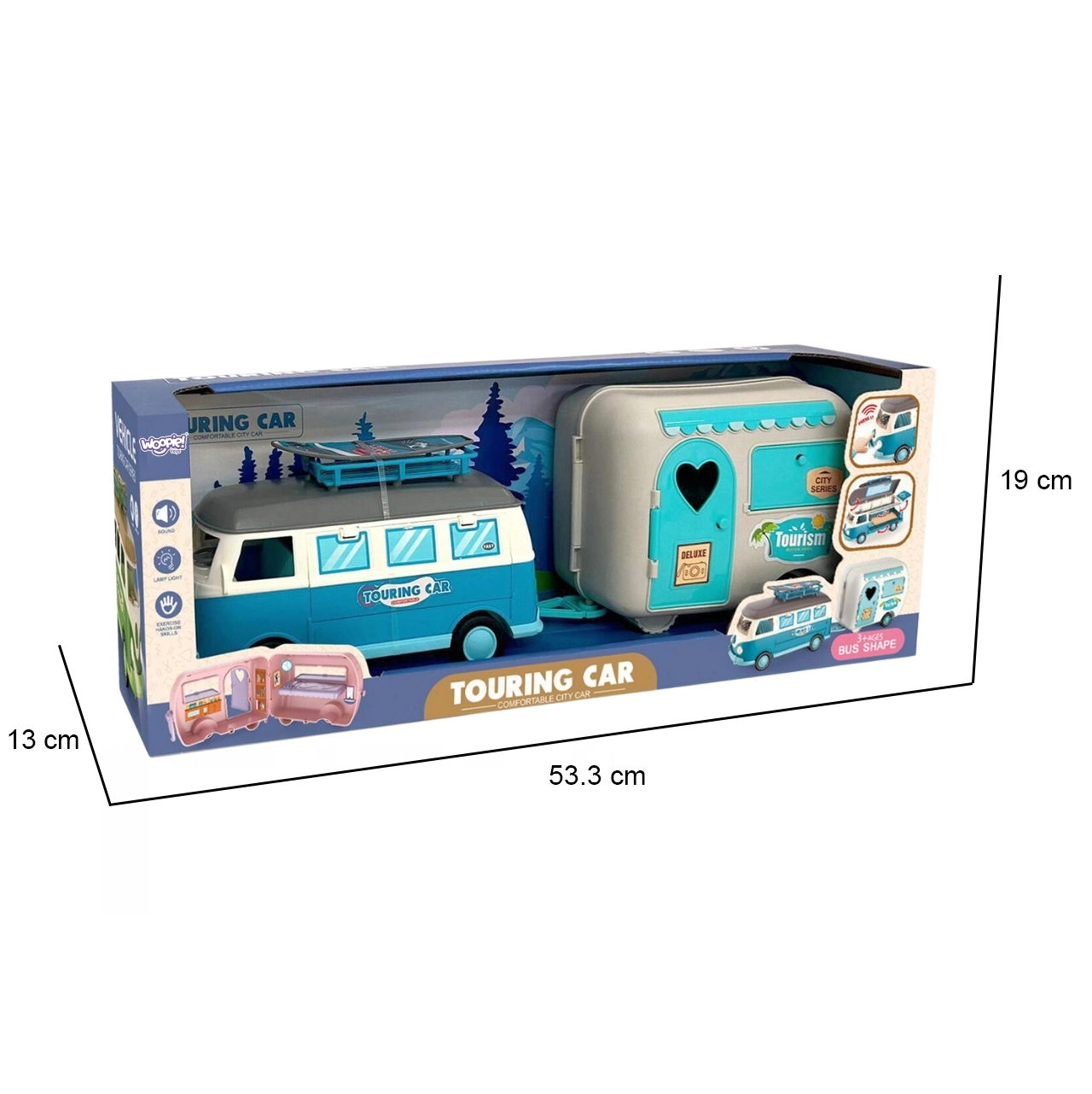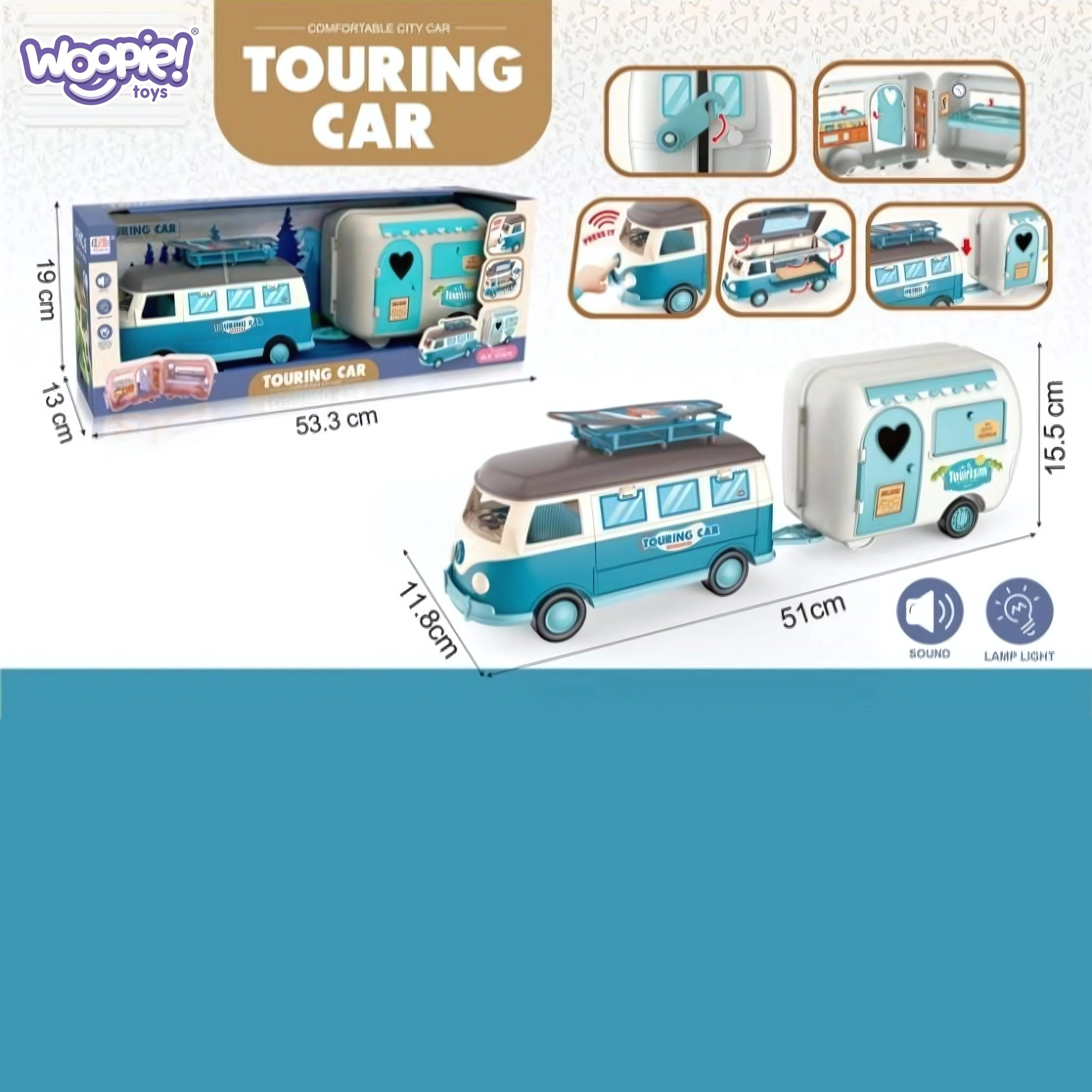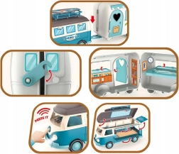 Avasta imeliste seikluste maailm erilise haagisega karavani abil brändilt Woopie! See värviküllane retro-stiilis mänguasi on ideaalne väikestele avastajatele, kes armastavad loovat mängu. Karavanil ja haagisel on avatavad osad, realistlik interjöör ning valgus- ja heliefektid, mis muudavad iga reisi unustamatuks.