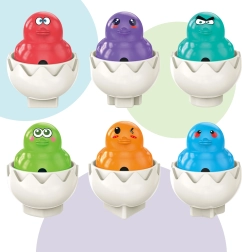 Woopie mängumunad tutvustavad teie last värvide, kujundite ja rõõmsate nägude maailmaga. Iga kuuest armsast munast peidab endas värvilist tibu naljaka ilmega ning vajutamisel kostab heli efekt. Eesmärk on mitte ainult kokku sobitada õige koor, vaid ka asetada see karbis õigesse pesasse.