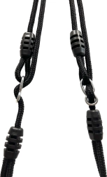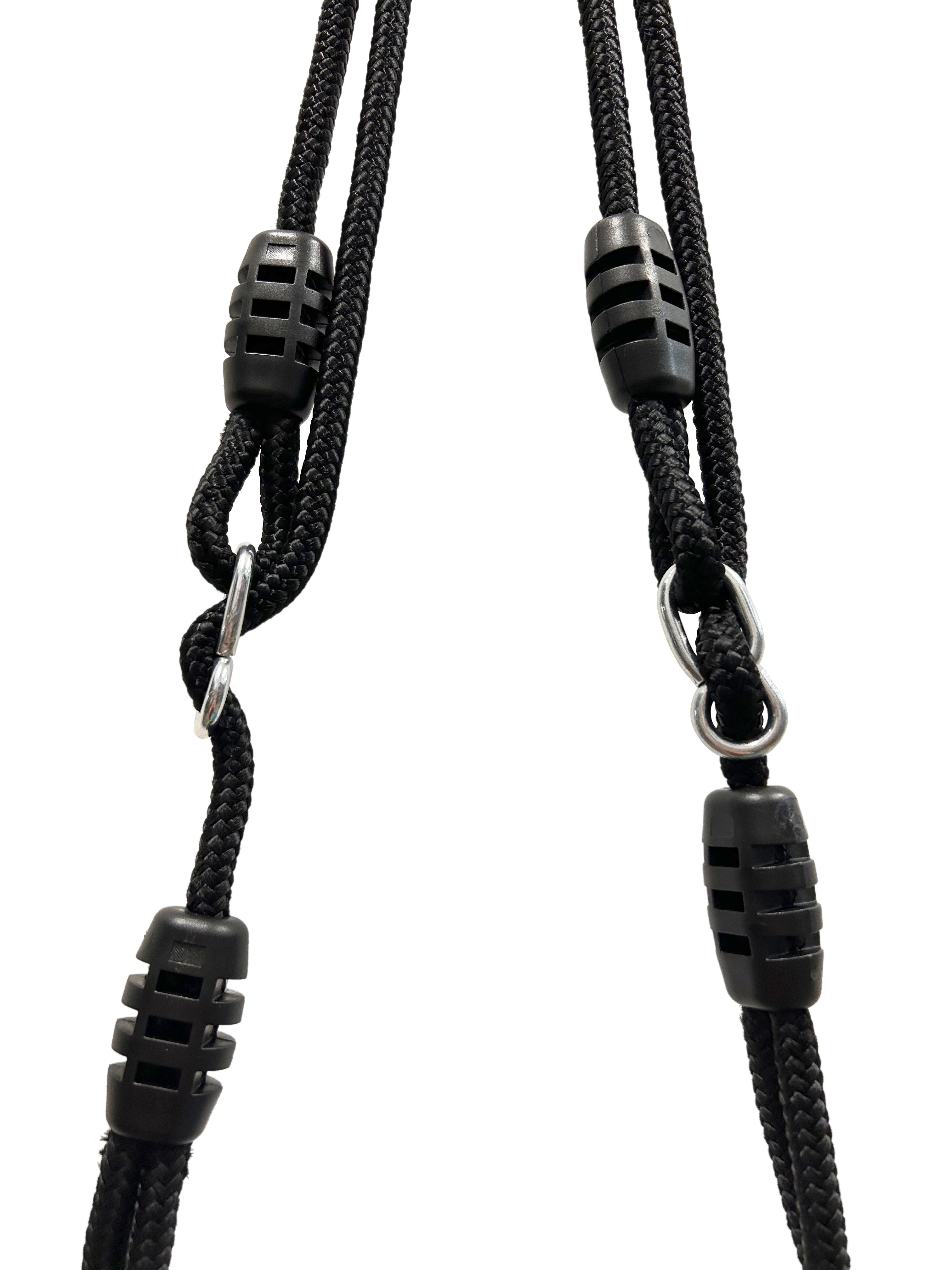Vastupidav riputussüsteem liugpandlate ja metallrõngastega tagab kindla kinnituse ja stabiilse kiikumise nii õues kui ka mängukonstruktsioonidel.