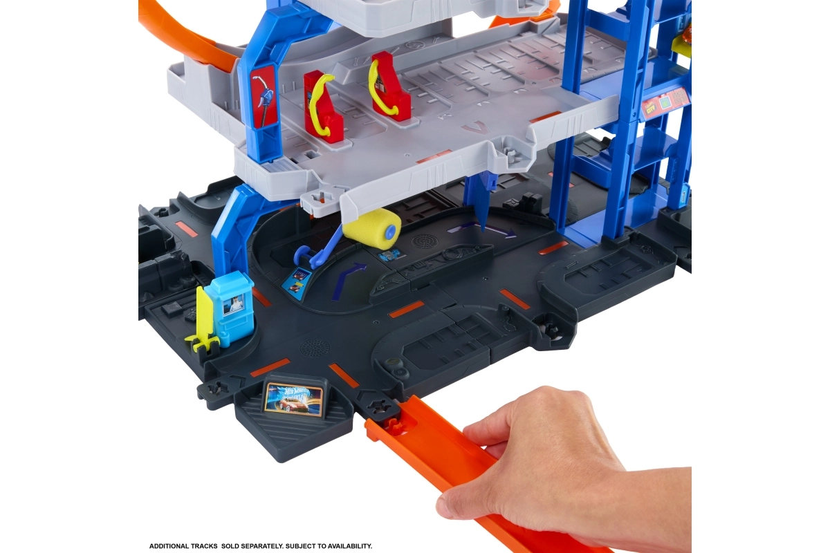 Avasta tegevusrohke lõbu Hot Wheels City garaažiga, mis pakub kolme korrust täis võidusõitu, kaskadööritrikke ja fantaasiat. Lapsed naudivad topeltsilmust, töötavat autopesulat liikuva vahurulliga, käsitsi juhitavat lifti ning kopterit koos kanduriga. Komplektis on metallist HOT WHEELS-i mudelauto ja helikopter, ning tänu ühilduvatele ühendustele saab komplekti hõlpsasti laiendada. Ideaalne lastele alates 4. eluaastast.