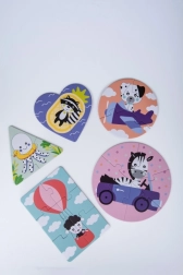 Armsad illustratsioonid pingviinist, pandast, ahvist ja teistest loomadest motiveerivad lapsi korduvalt puslet kokku panema ning treenima peenmotoorikat.