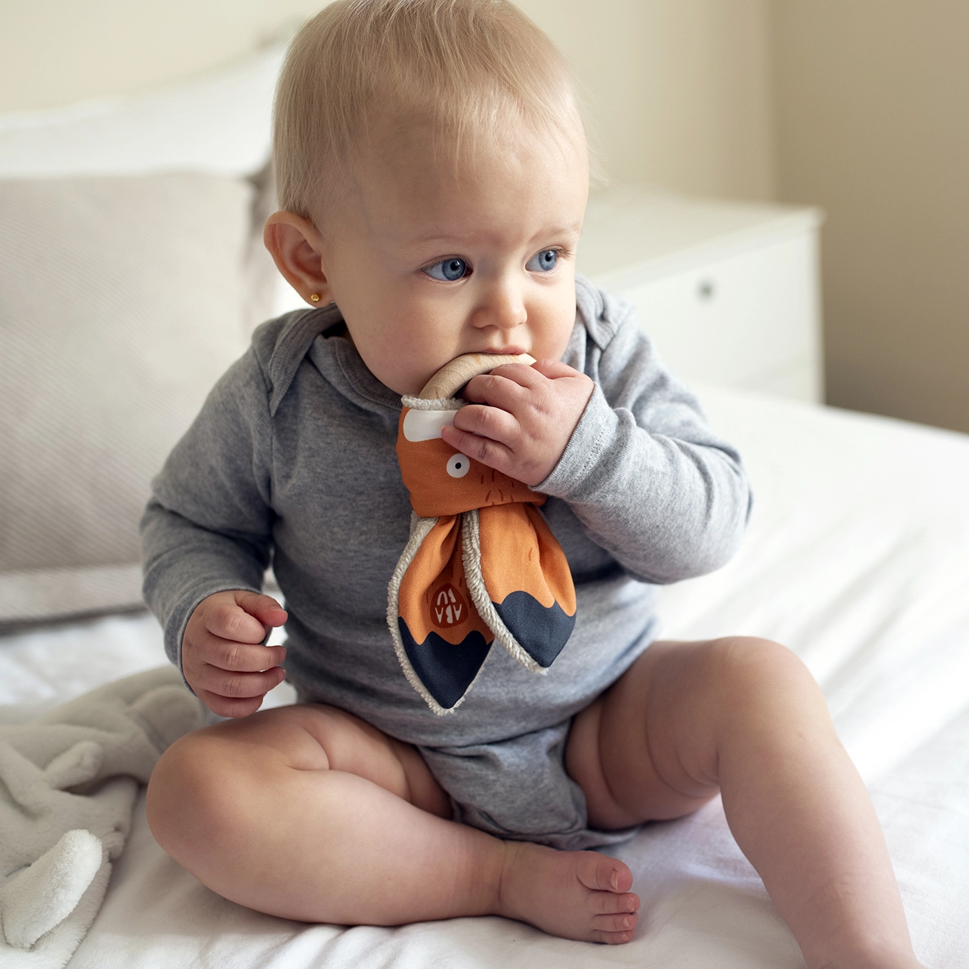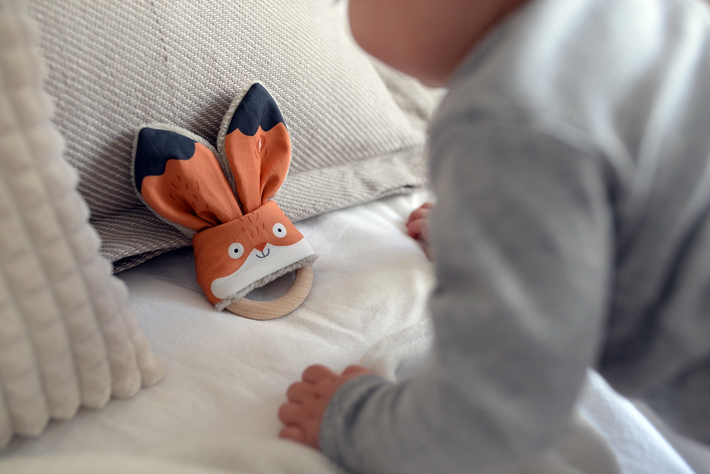 Ababu närimislelu Rebane ühendab originaalse disaini ja turvalisuse kõige pisematele. Autorlusprindiga kaetud materjal on 100% puuvill, sertifitseeritud kuni 3-aastastele lastele. Rõngas on valmistatud looduslikust pöögipuidust, käsitsi tehtud Vysočina piirkonnas.