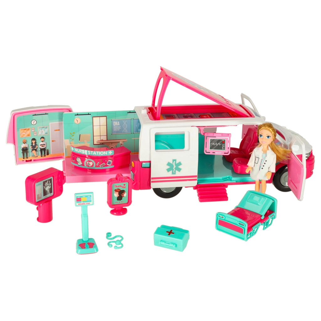 Laste mobiilne kiirabikliinik on ideaalne mänguasi väikestele meditsiinihuvilistele. Tänu kaasas olevale arsti-nukule ja lisatarvikutele, nagu kokkupandav voodi või röntgen, saavad lapsed arendada loovust ja mängida päästjaid.