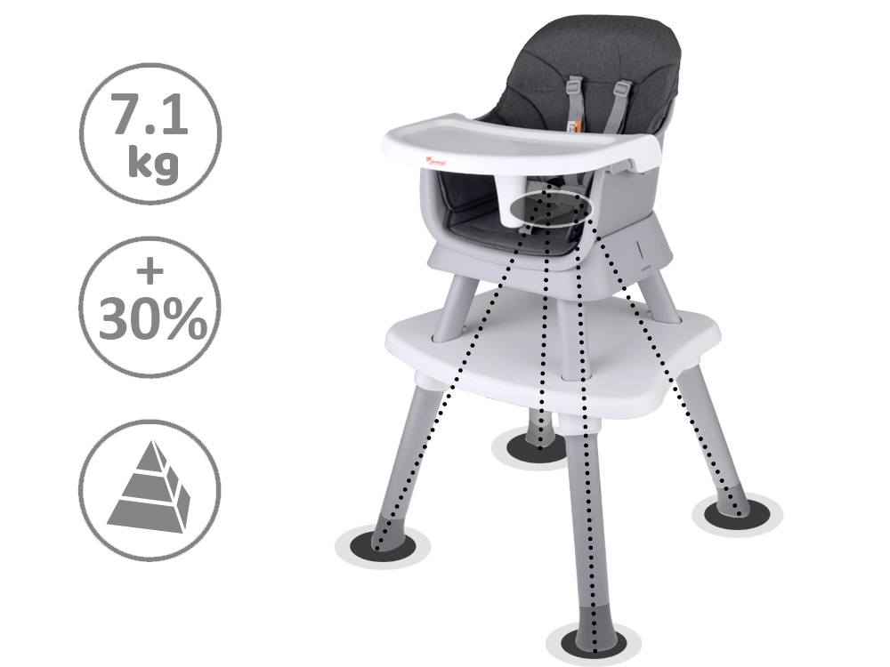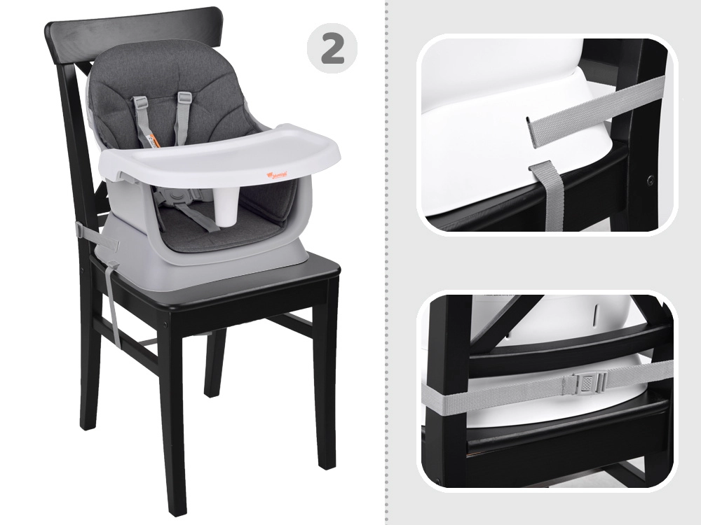 - Lisamoodul söögilaua juurde – kinnitusrihmade ja libisemiskindlate jalgadega saab turvaliselt kinnitada mis tahes toolile.