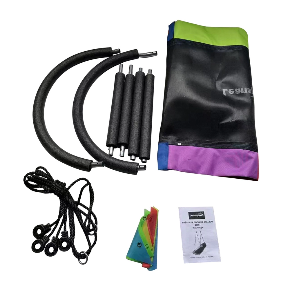 Kiik on varustatud tugevate köitega, mille kõrgust saab reguleerida vahemikus 140 kuni 180 cm, võimaldades paindlikku kasutust mitte ainult aias, vaid ka siseruumides, näiteks lastetoas või rõdul.