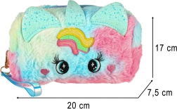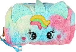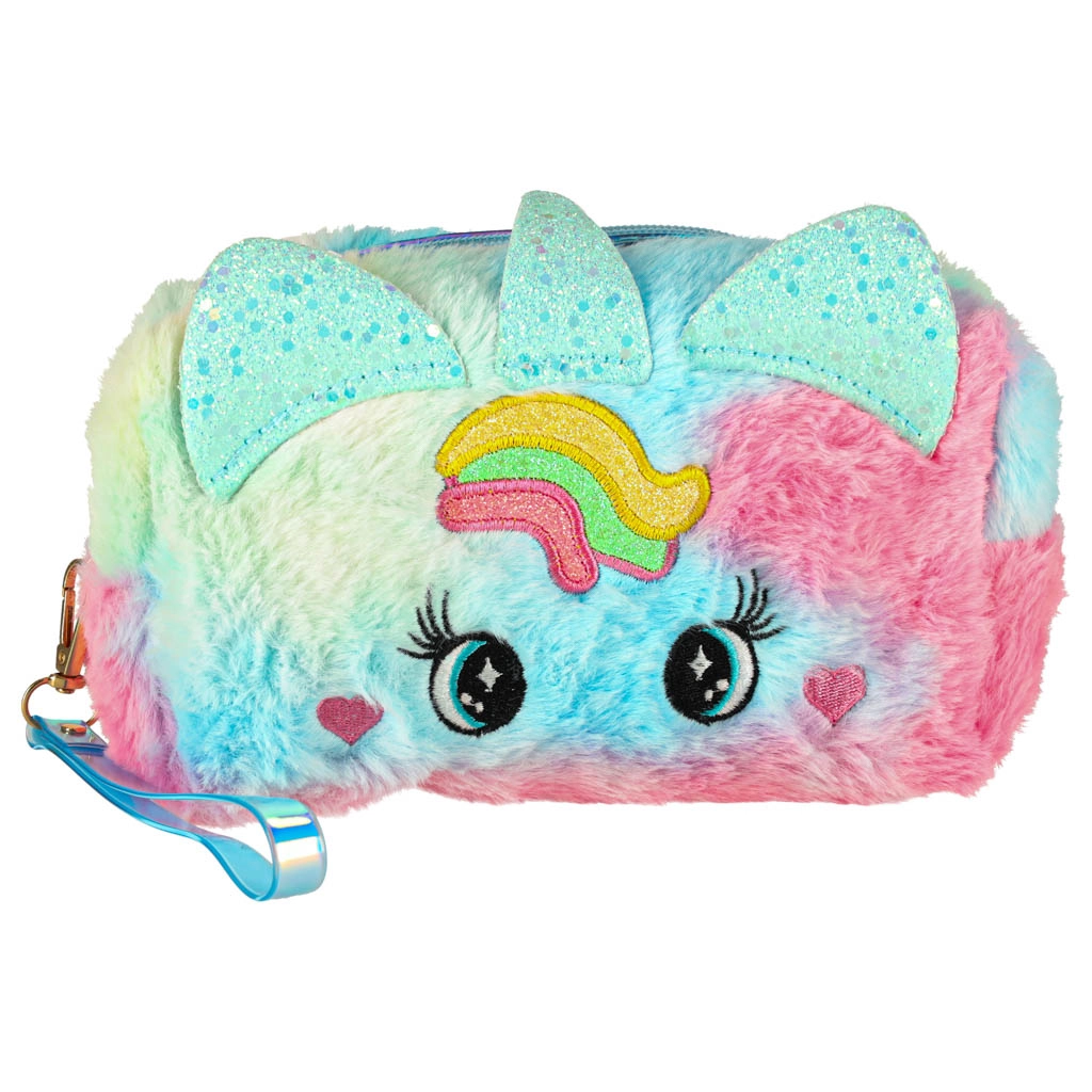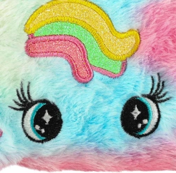 Ükssarvikust inspireeritud disain vikerkaaremustriga ja kõrvakestega, ideaalne kosmeetikatoodete hoiustamiseks.