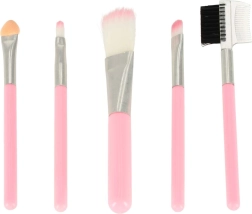 Viis erinevat pintslit roosade käepidemete ja metallsete ääristega on ideaalsed kosmeetika tõhusaks pealekandmiseks.
