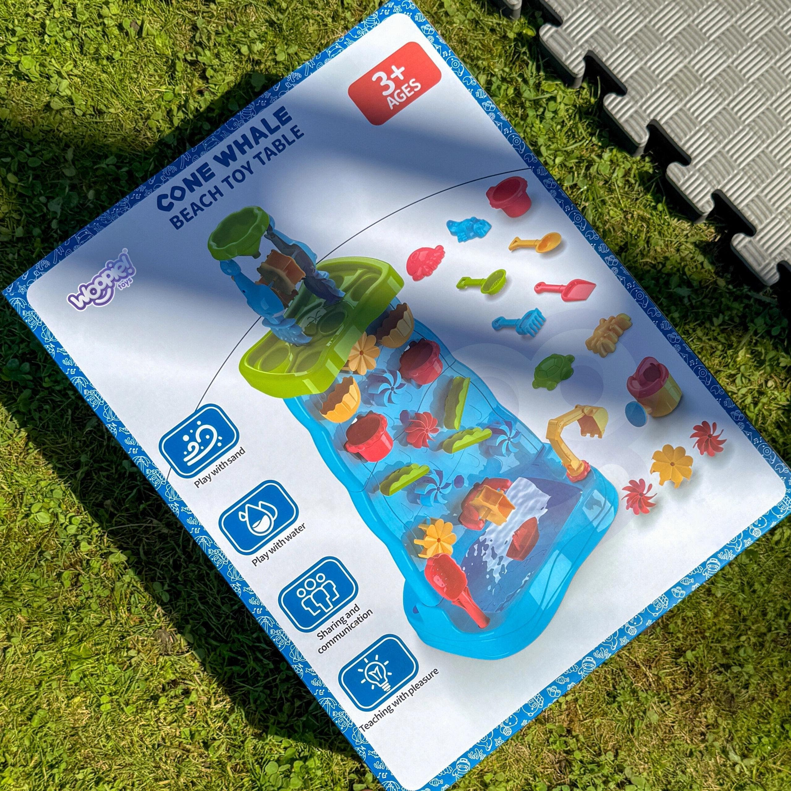 Muuda aed või rand naeru ja avastusi täis mängualaks XXL WOOPIE 2-ühes vee laua ja kahepoolselt kasutatava veeseinaga. Lapsed saavad vett valada, ümber kallata ja jälgida, kuidas vesi paneb pöörlema veskit, rattakesi ja tasse. Tänu rikkalikule lisatarvikute komplektile loovad nad oma mini veeraja ning saavad mängida mõlemalt poolt korraga. Mänguasi on stabiilne, avar ja sobib korraga ka mitmele lapsele, arendades peenmotoorikat, käe-silma koordinatsiooni ja loovust.