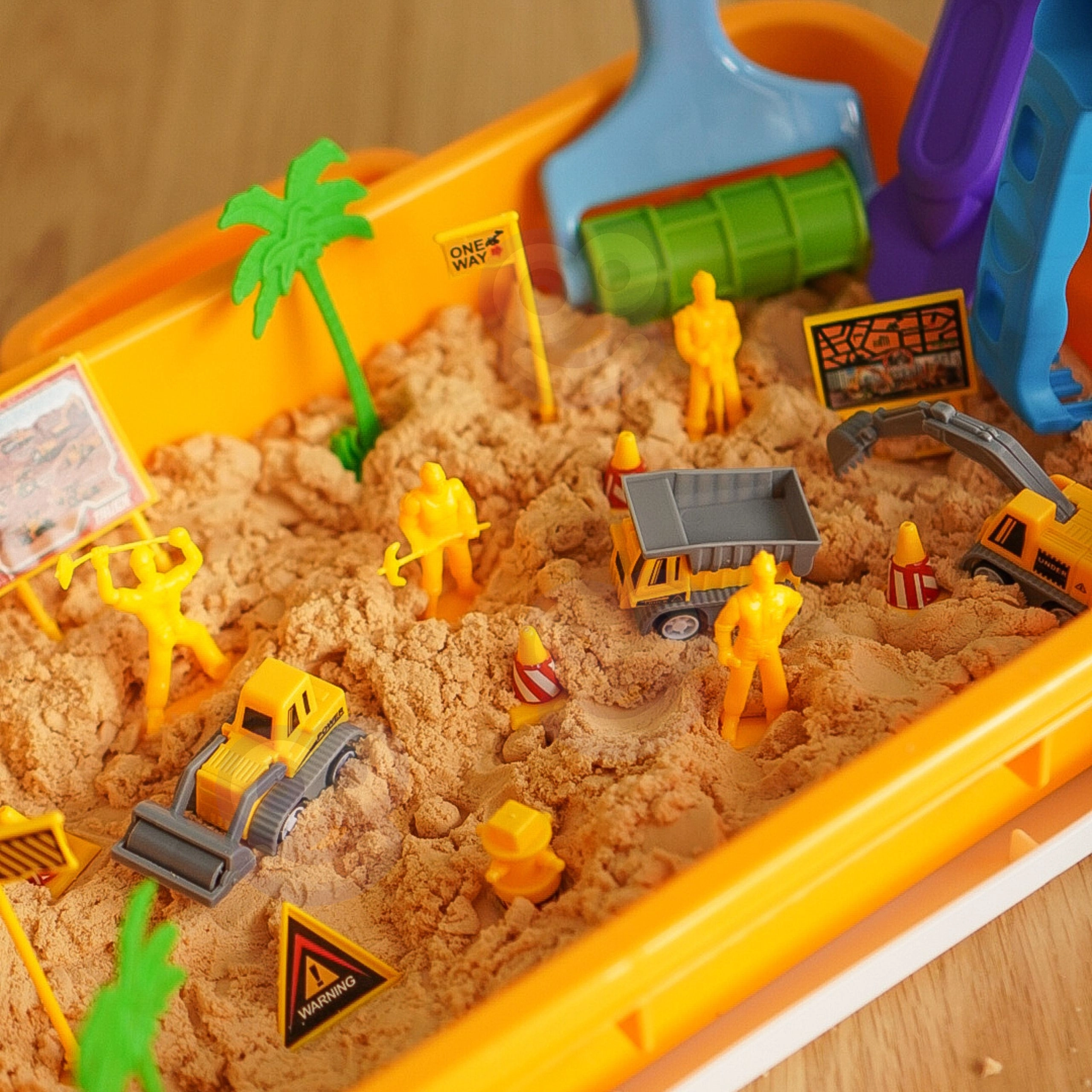 See loov ehituskomplekt kineetilise liivaga toob realistliku ehitusteemalise lõbu. Kaasaskantav kandikpõhi kõrgete servadega hoiab liiva koos, samal ajal kui mini ekskavaatorid, kallurid, teerullid, kujukesed ja liiklusmärgid aitavad lastel luua oma ehitusplatsi. Kineetiline liiv ei kleepu käte ega põranda külge ning on mittetoksiline.