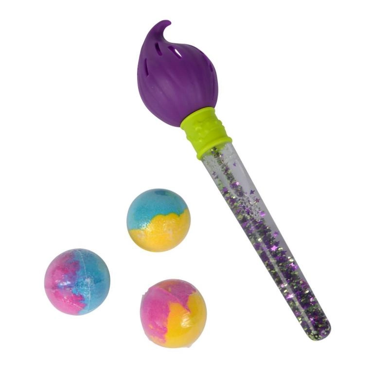 Avastage veealune lõbu meie Glibbi võlumeelelise veepintsliga, mis võimaldab vannis joonistada tänu kolmele kaasasolevale kihisevale värvipommile.
