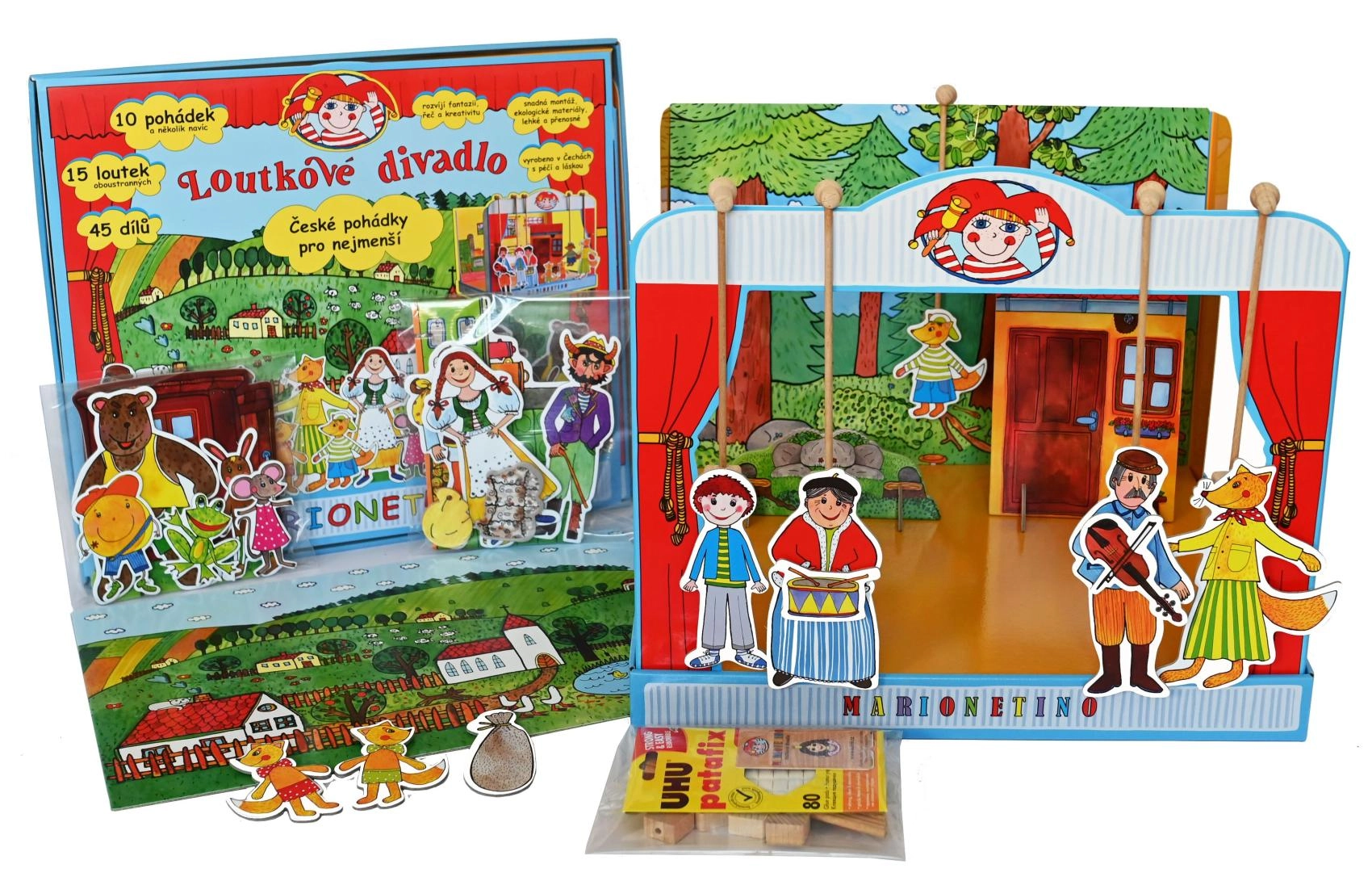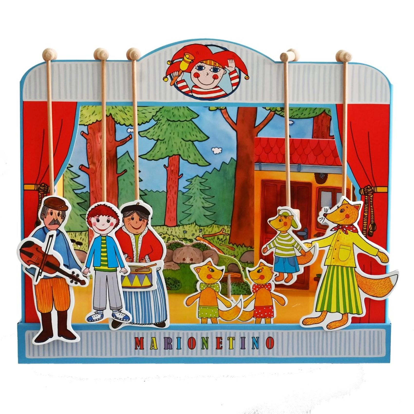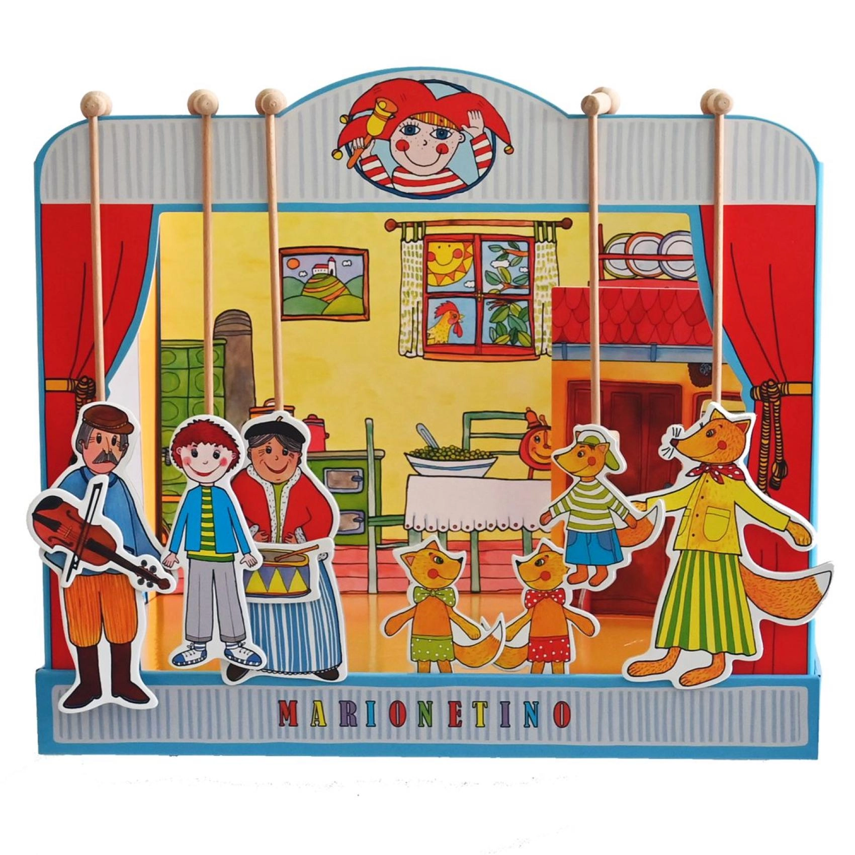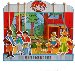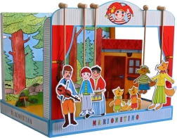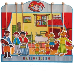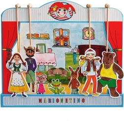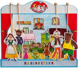 Komplekt on valmistatud kvaliteetsest köitepapist, puidust ja lamineeritud kartongist, mis tagab vastupidavuse ja pika eluea. Ideaalne väiksematele lastele, kes alles õpivad teatrikunsti, ning kogu pere meelelahutuseks.