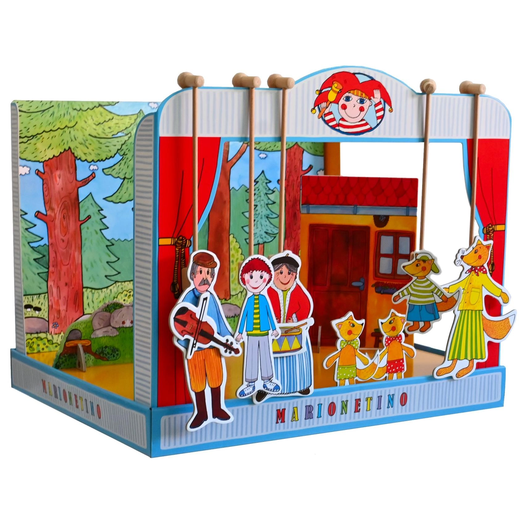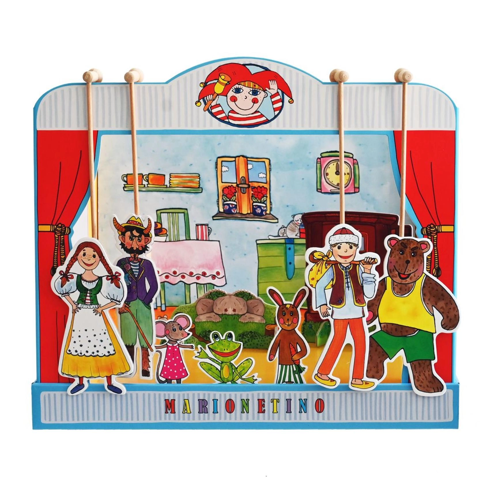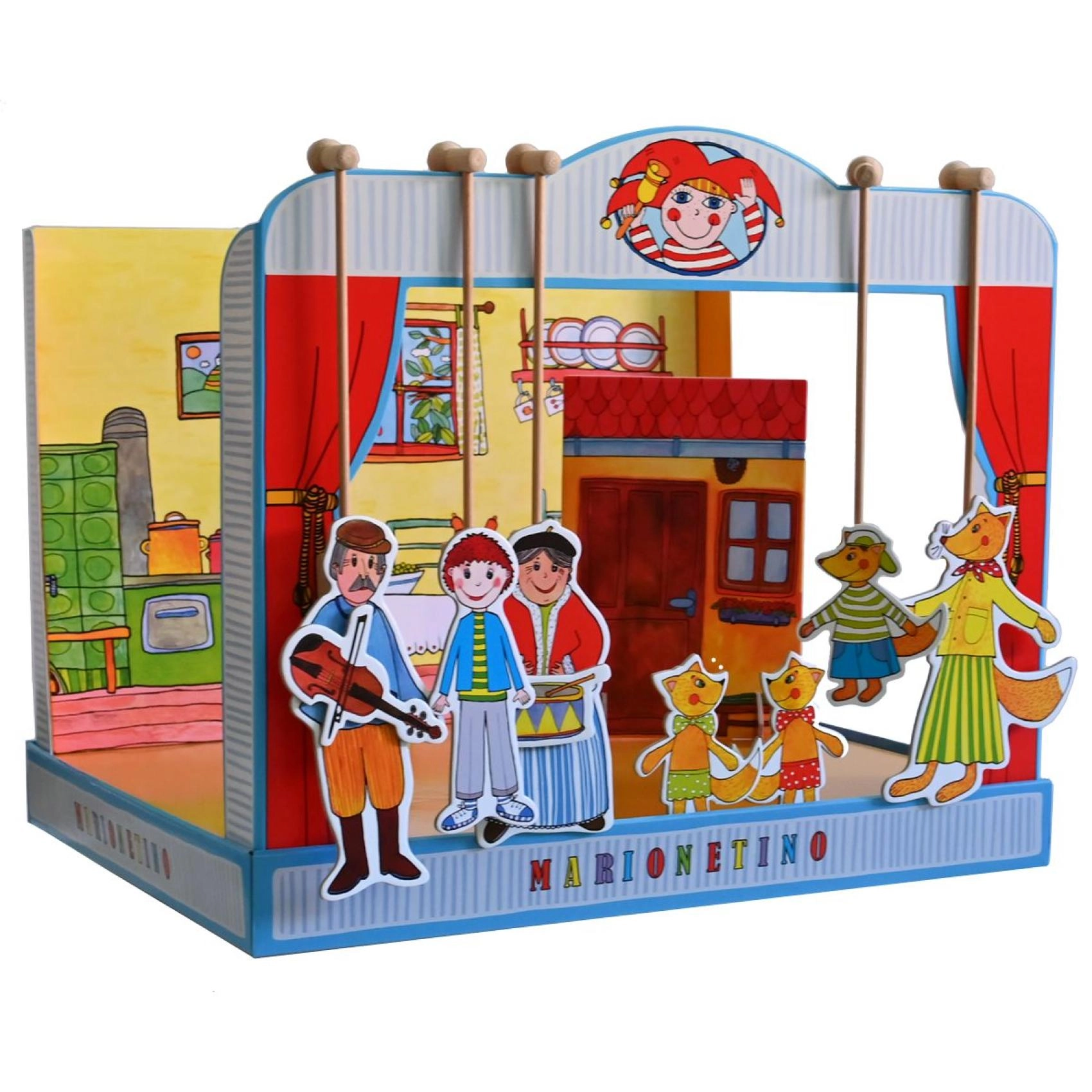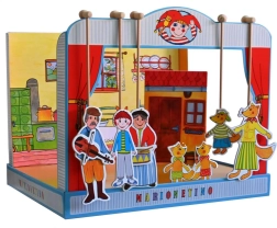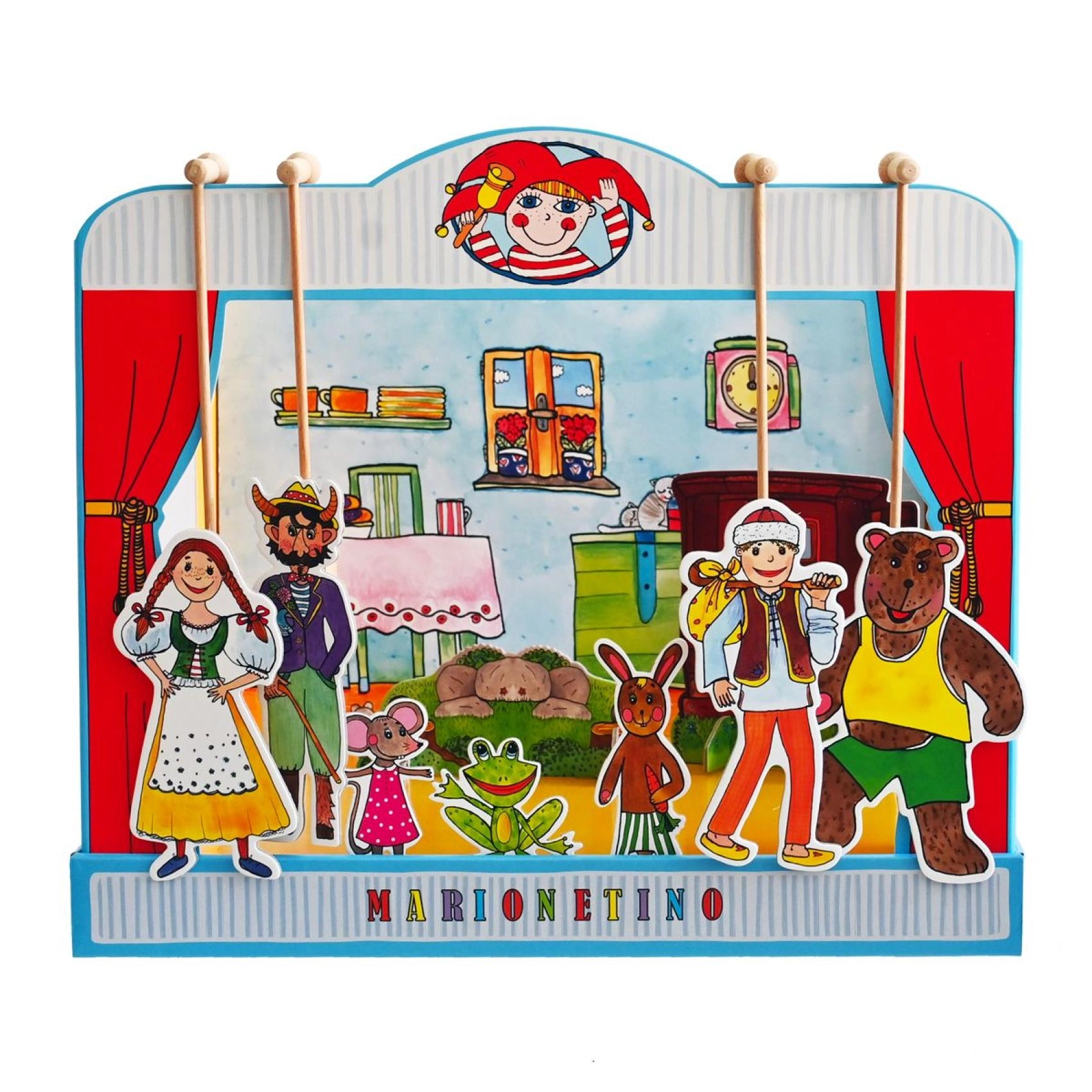 Komplekt on valmistatud kvaliteetsest köitepapist, puidust ja lamineeritud kartongist, mis tagab vastupidavuse ja pika eluea. Ideaalne väiksematele lastele, kes alles õpivad teatrikunsti, ning kogu pere meelelahutuseks.