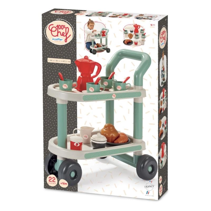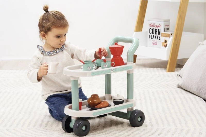 Tutvustame hommikusöögikäru tarvikutega, mis on ideaalne väikestele baristadele ja pagaritele. Komplektis on kokku 22 osa, mis pakuvad kõik vajaliku täiuslikuks hommikuseks suupisteks. Käru on ratastel, mis tagab lihtsa liigutamise toas või aias.