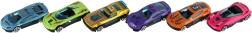 Avasta lõbu mini-võidusõiduautodega, mis rõõmustavad nii väikseid kui ka suuri kiirusesõpru. Tänu tugevdatud metalli‑ ja plastkorpusele peavad need vastu paljudele mängudele ning nende kompaktne 7 cm suurus sobib suurepäraselt nii koduradadele kui ka reisile. Vabaveeremine võimaldab sujuvat sõitu – piisab õrnast tõukest ja auto hakkab liikuma.