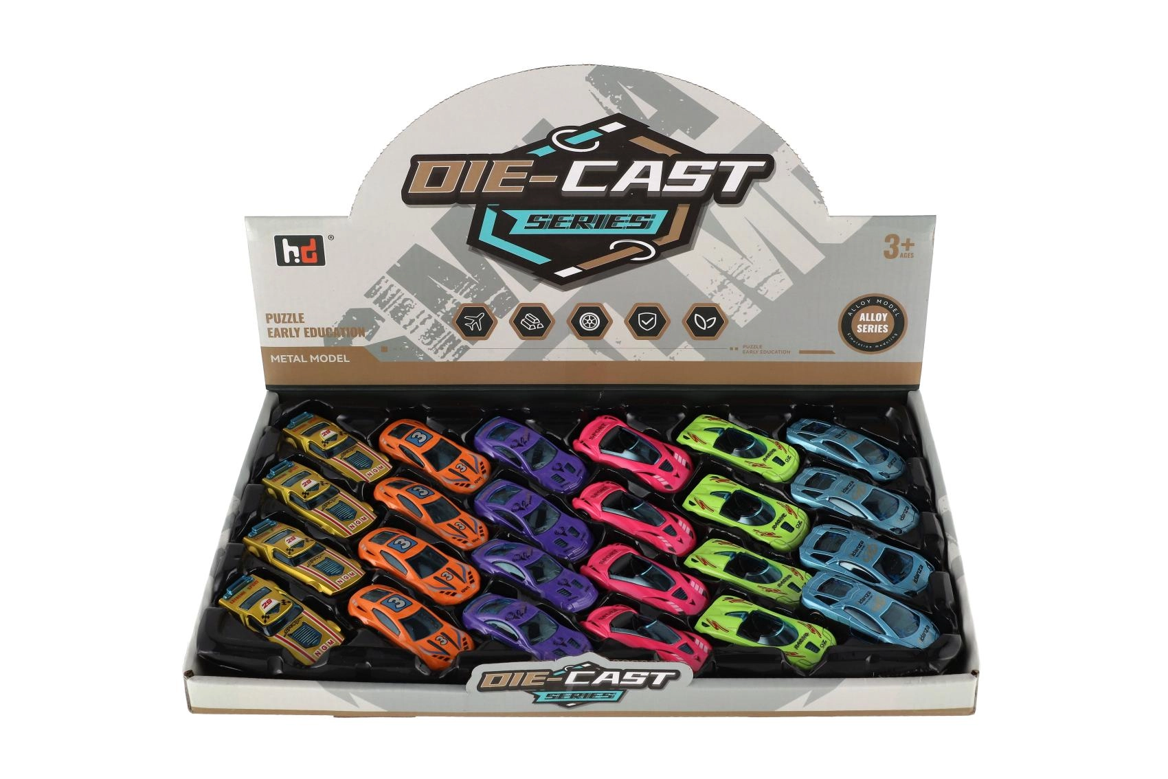 Igal autol on atraktiivne sportlik välimus ning need tulevad värvide ja trükkide mixis, et lapsed saaksid luua oma võidusõidutiimid. Suurepärane motoorika arendamiseks, kujutlusvõime ergutamiseks ja ühisteks mängudeks sõpradega.
