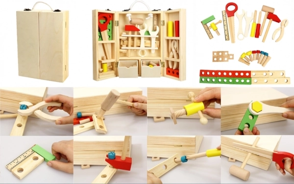 Avasta loominguline maailm selle puidust tööriistakomplektiga. Ideaalne lastele, kes armastavad avastada ja meisterdada.