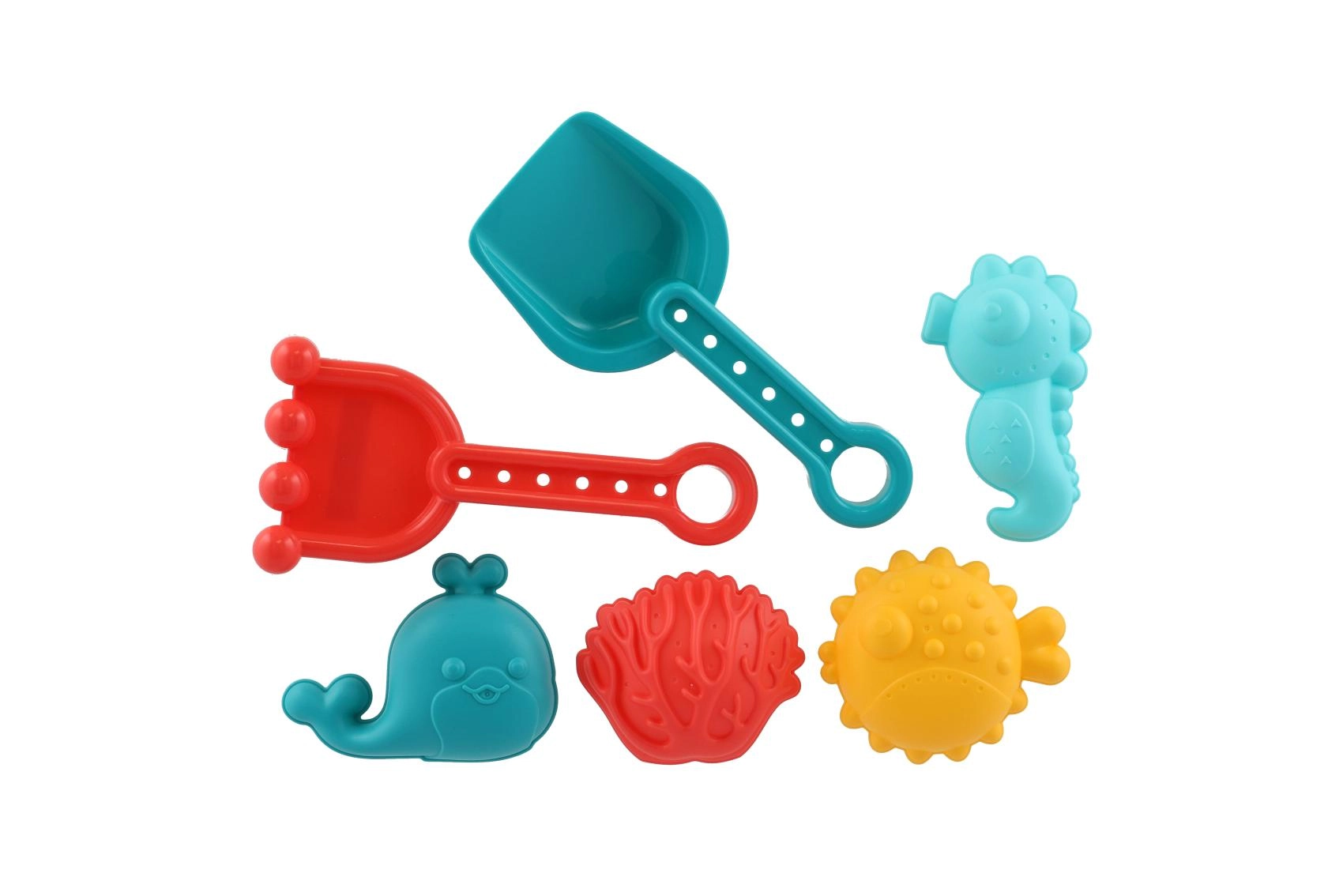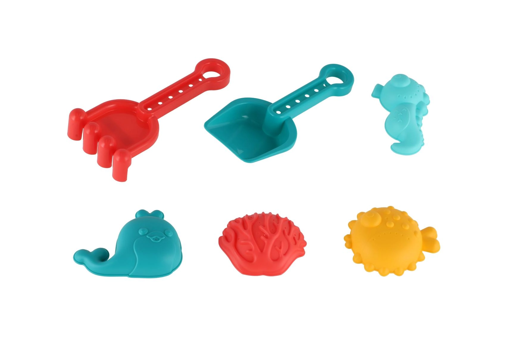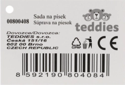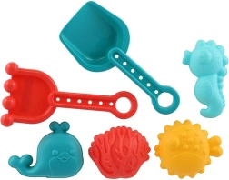 Komplektist leiad kõik vajaliku loomiseks: labida tõstmiseks, reha silumiseks ja vormimiseks ning värvilised vormid lõbusate kujundite jaoks. Komplekti saab kasutada liivakastis, rannas ja isegi vannis.