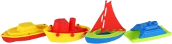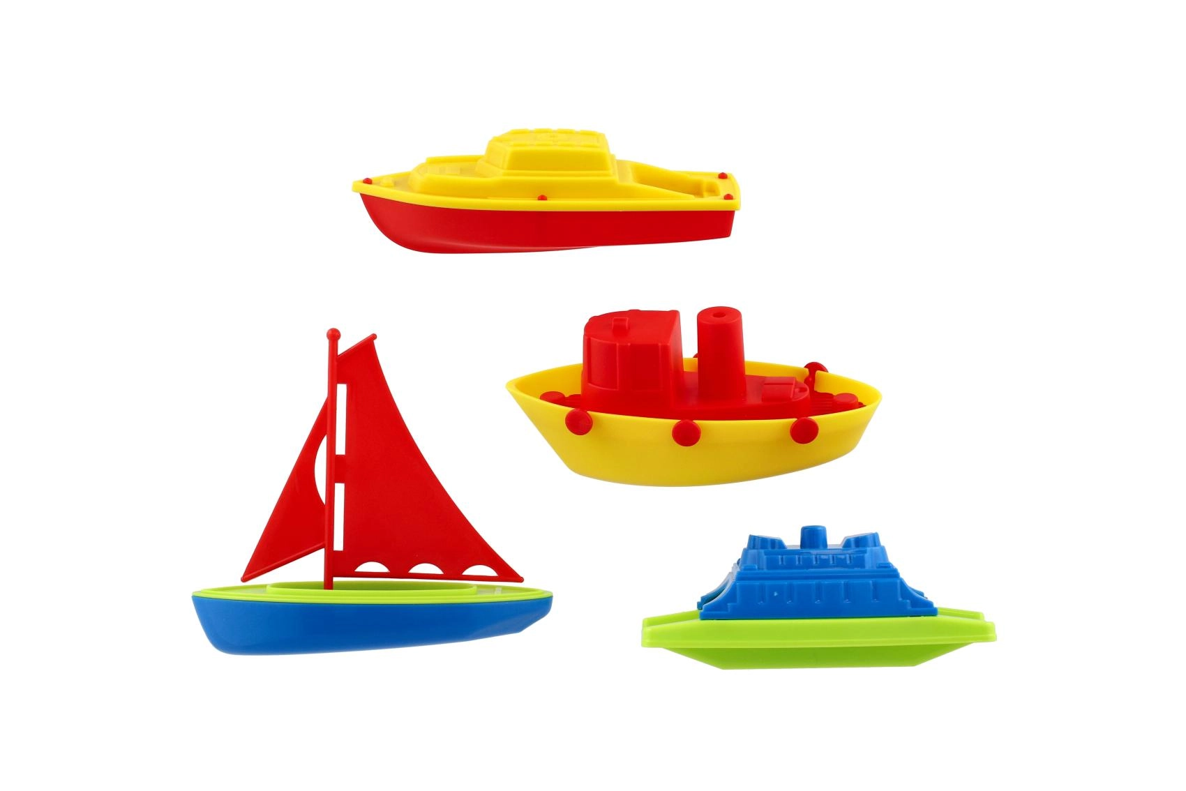 See praktiline komplekt sisaldab nelja plastist laevukest eri vormide ja värvidega, sh purjekat ja mootorpaate. Laevukesed on kerged, vastupidavad ja sobivad hästi väikestesse lapsekätessse. Tänu ujuvale konstruktsioonile on need suurepärased kasutamiseks nii vannis kui ka lastebasseinis.