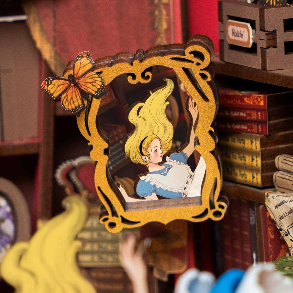 See 3D raamatuhoidja on enamat kui lihtsalt funktsionaalne tarvik – see on teekond fantaasiamaailma. Hoolikalt läbimõeldud stseen sisaldab detailseid kaunistusi, nagu vanad raamatud, punased kärbseseened ja lõpmatu peegli illusioon. Puutetundlik lüliti kärbseseenes lülitab sisse õrna sooja valgustuse, mis valgustab kogu stseeni ja lisab sellele lummust.