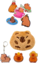 Pinal on valmistatud vastupidavast materjalist, mis tagab pika kasutusea. Selle elegantne beež värv sobib erinevate stiilidega. Komplektis on ka plüüšist kapübaar, mille saab kinnitada pinali, seljakoti või riiete külge. Tarvikute komplekt sisaldab veel kapübaaramotiiviga võtmehoidjat, kahte klambrit ja viit kapübaarakleepsu.