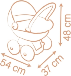 Vankri mõõtmed on 54 × 37 × 48 cm (P×L×K), mis teeb sellest ideaalse valiku kõigile selle suurusega sobivatele nukkudele. Nukk ei kuulu komplekti, mis võimaldab lapsel valida täpselt oma eelistuste järgi.
