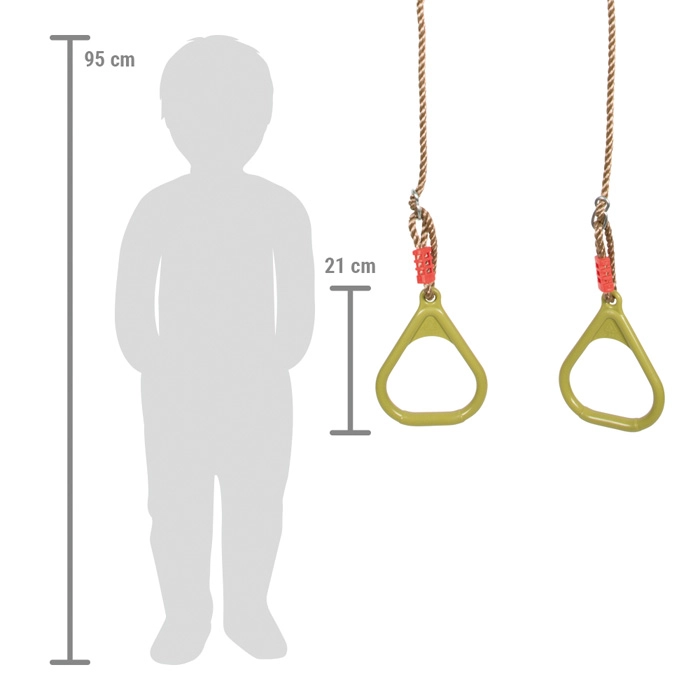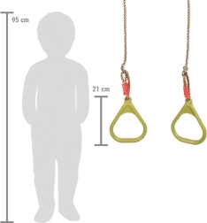 Viige laste lõbusaeg maksimumini võimlemisrõngastega. Rõngad on mõõtudelt kohandatud ka väiksematele lastele, mis võimaldab neil turvaliselt harjutada kõige julgemat akrobaatikat. Köied on hõlpsasti kõrguses reguleeritavad ning otstes on metallrõngad lihtsaks riputamiseks.