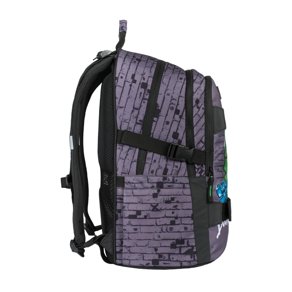 Ees on kaks rihma, mis sobivad ideaalselt rulatamise varustuse, jope või kiivri kinnitamiseks – seda hindavad eriti aktiivsed õpilased. Seljakott on valmistatud vastupidavast ja veekindlast materjalist ning varustatud helkurdetailidega turvalisuseks halva nähtavuse korral. Boonusena leiad metallist rulakujulise ripatsi.