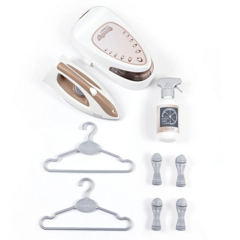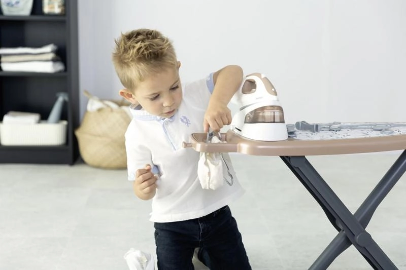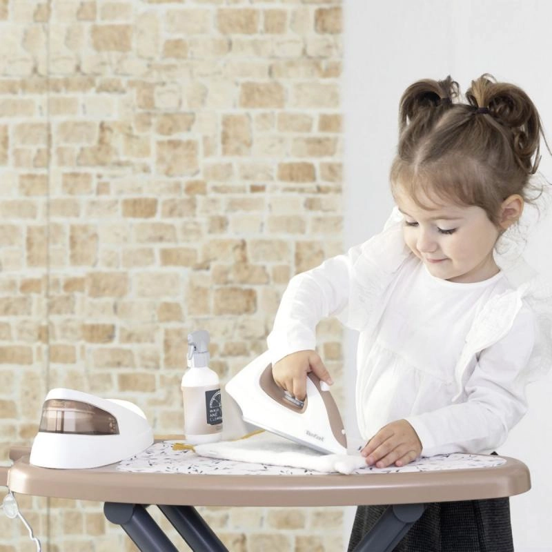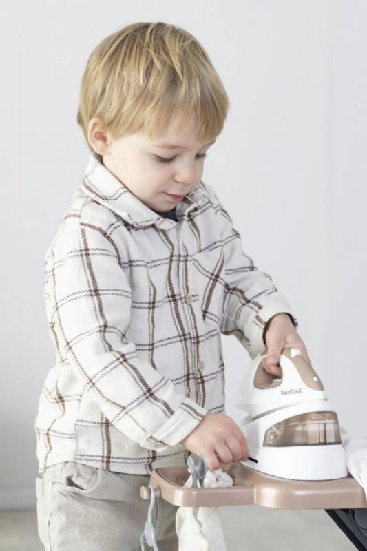See realistlik laste triikimislaud koos Tefali aurujaamaga on ideaalne väikestele koduabilistele. Komplektis on triikraud mehaanilise pöördnupuga, mis teeb heli „krõks-krõks“.