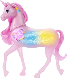 Barbie võlu-ükssarvik muudab iga mängu värvikaks etteasteks, mis on täis tulesid, helisid ja muusikat. Lihtsa peasilitusega käivitad show’ ning kolme värvinupu abil lood kuni 20 ainulaadset kombinatsiooni – õrnadest sähvatustest kuni efektsete valguskoreograafiateni.